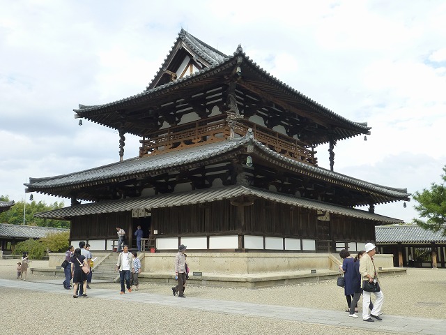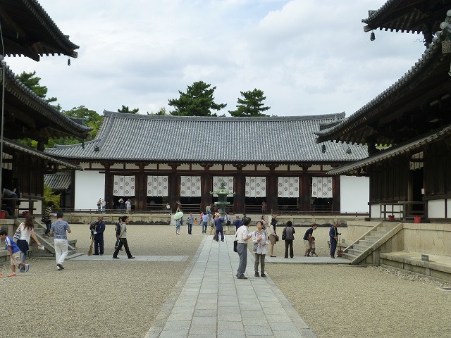威風堂々としたこの建物の中には、聖徳太子のために造られた金銅釈迦三尊像(飛鳥時代)、