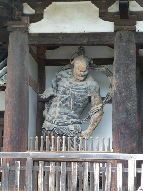 重厚な扉と左右に立つ金剛力士像(奈良時代)は、日本に残っている最古のものです。