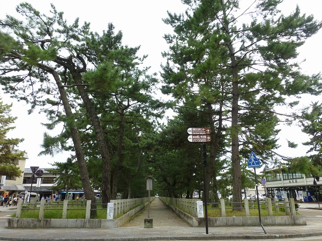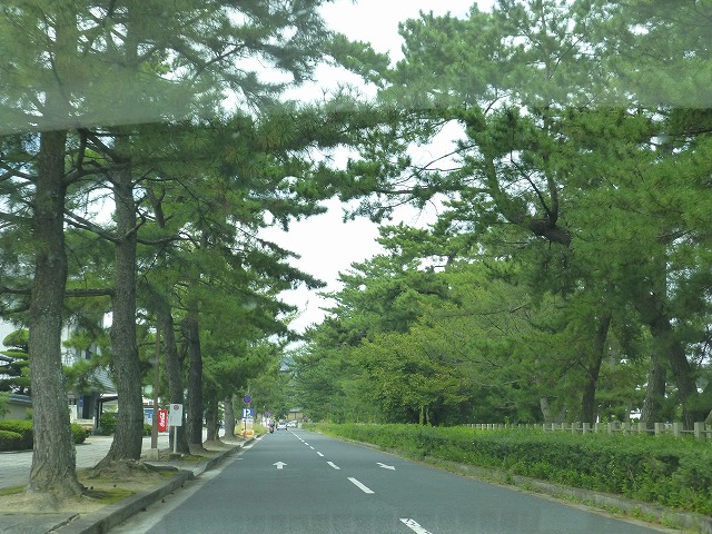 (写真右)車中から法隆寺の参道の松並木、懐かしい。