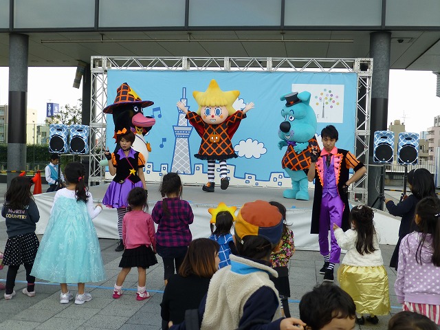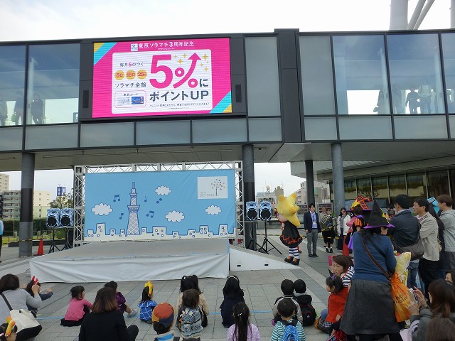 「ソラカラちゃんのマジカル☆ハロウィンダンス」を見物に、会場の東京スカイツリータウン「ソラマチ」スカイアリーナ特設ステージへ。