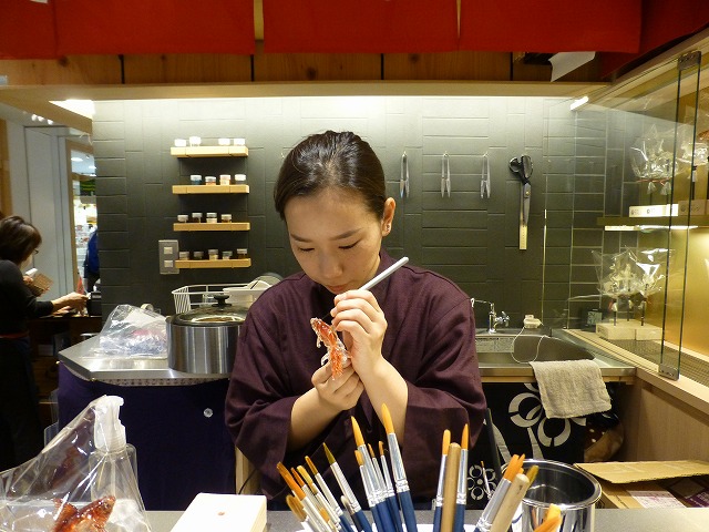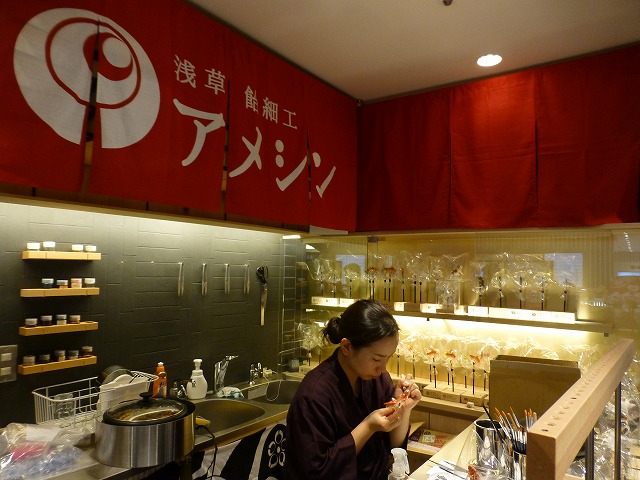 工房一体型の店鋪ですので、飴細工がハサミ一本でみるみるうちに作られる様をすぐ間近で。