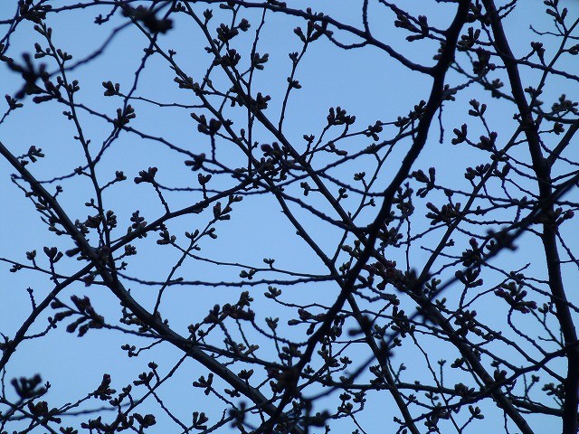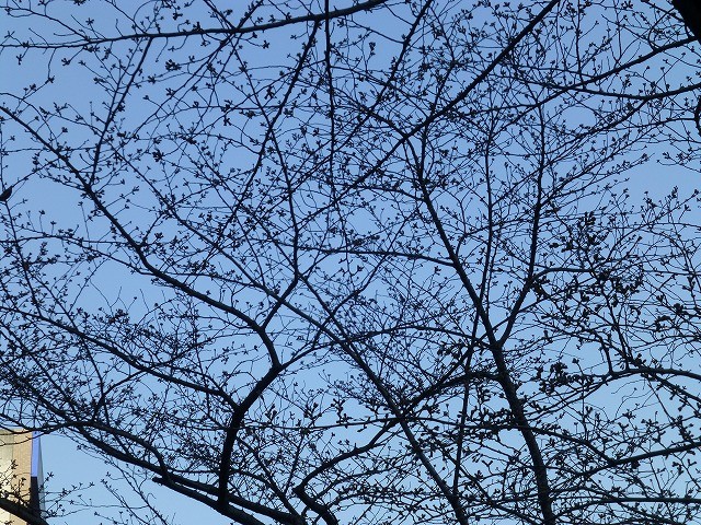 ソメイヨシノはまだまだ固い蕾のままです。