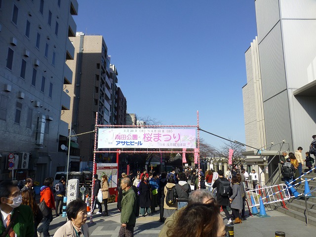 各路線「浅草駅」最寄りの台東区側、隅田公園で開催中の「桜まつり」。