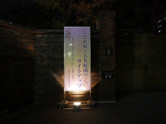 ライトアップは4月3日(日)まで。入場午後8時30分 閉園9時です。