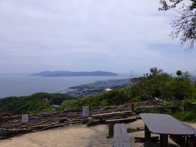 (写真左)淡路島と明石大橋がよく見えます。