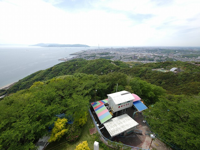 目的地でもある須磨浦山上遊園の回転展望閣が見えて来ました。