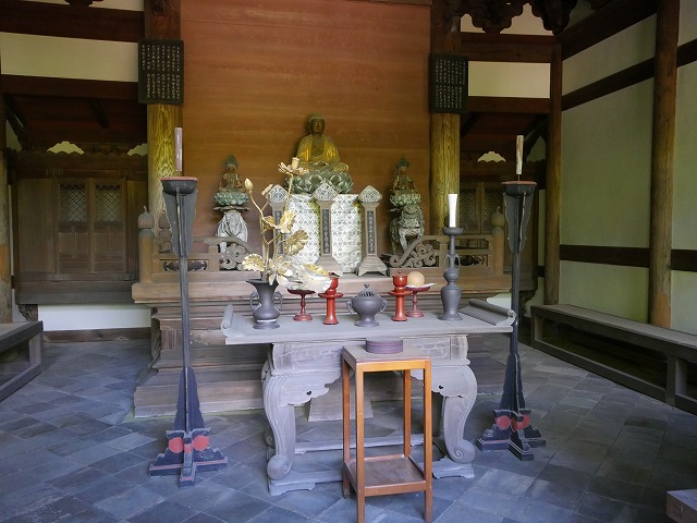 重要文化財の本堂(法堂)。その内部には本尊の釈迦如来坐像と文殊普賢菩薩像が安置されています。
