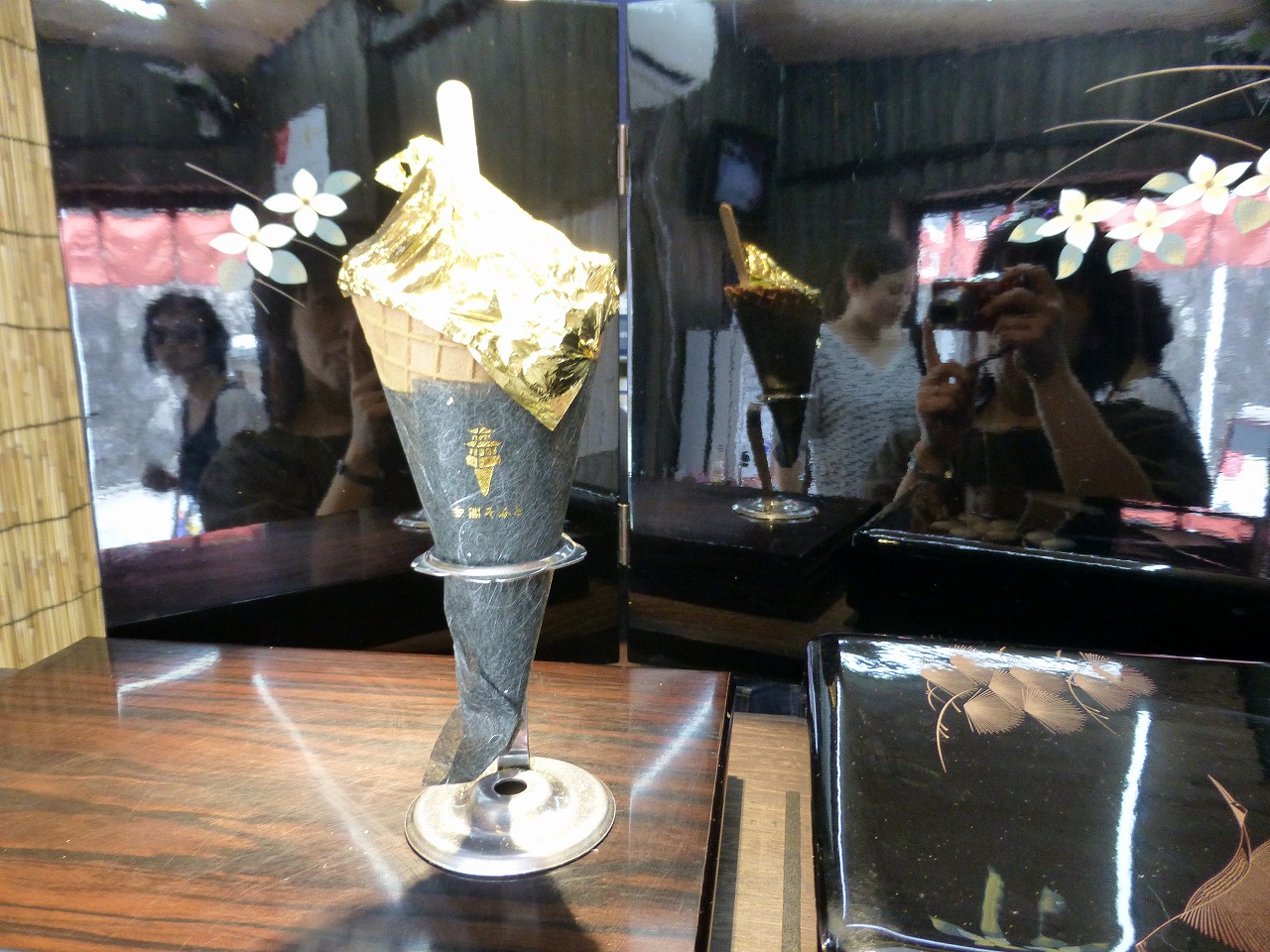 かの【世界遺産】鹿苑寺・金閣のごとく純金箔に覆われた超ゴージャスなソフトクリームなのであります。