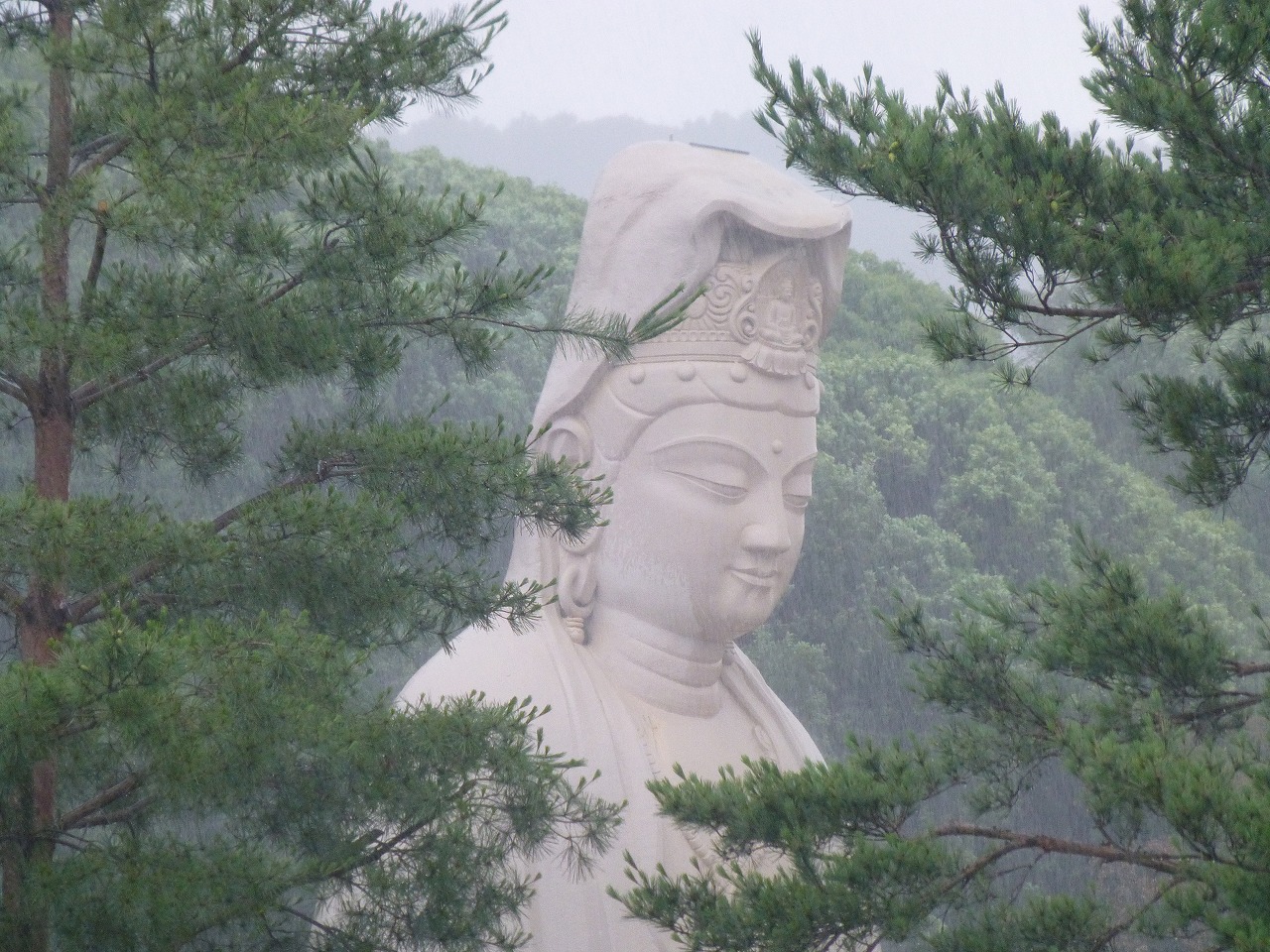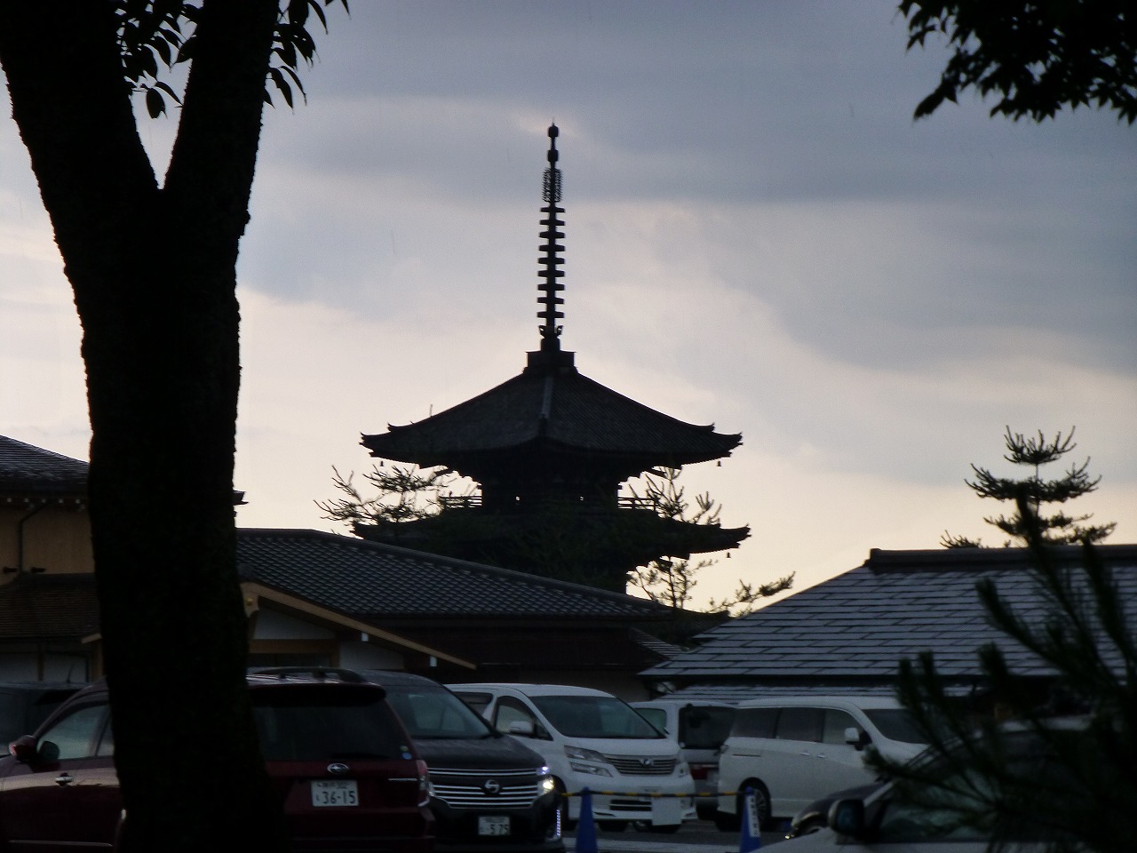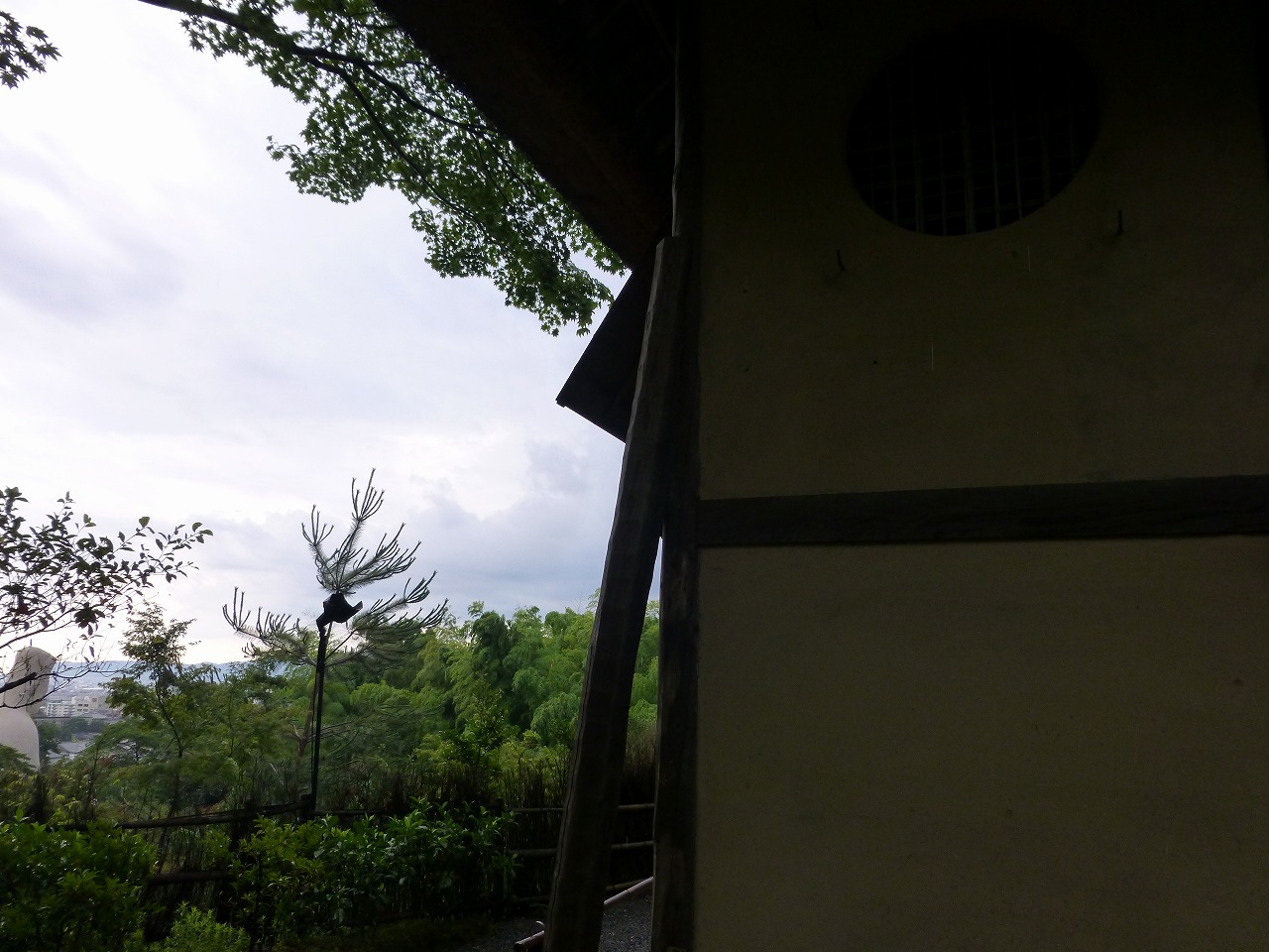 勢いを増す雨に霊山観音を眺めながら雨やどり。