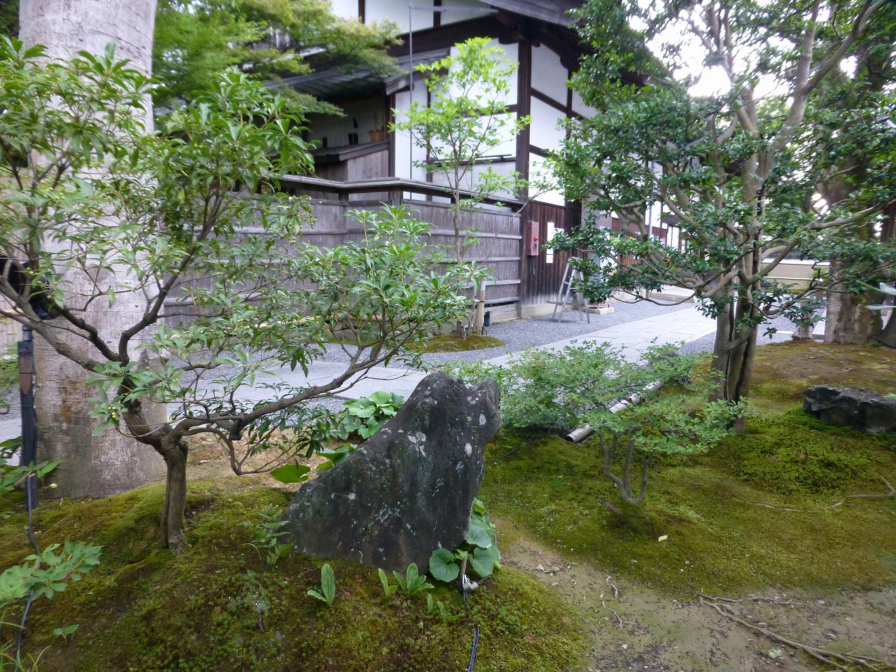 白砂とウマスギゴケの植え込みの色彩のコントラストが美しいといわれる方丈前庭。