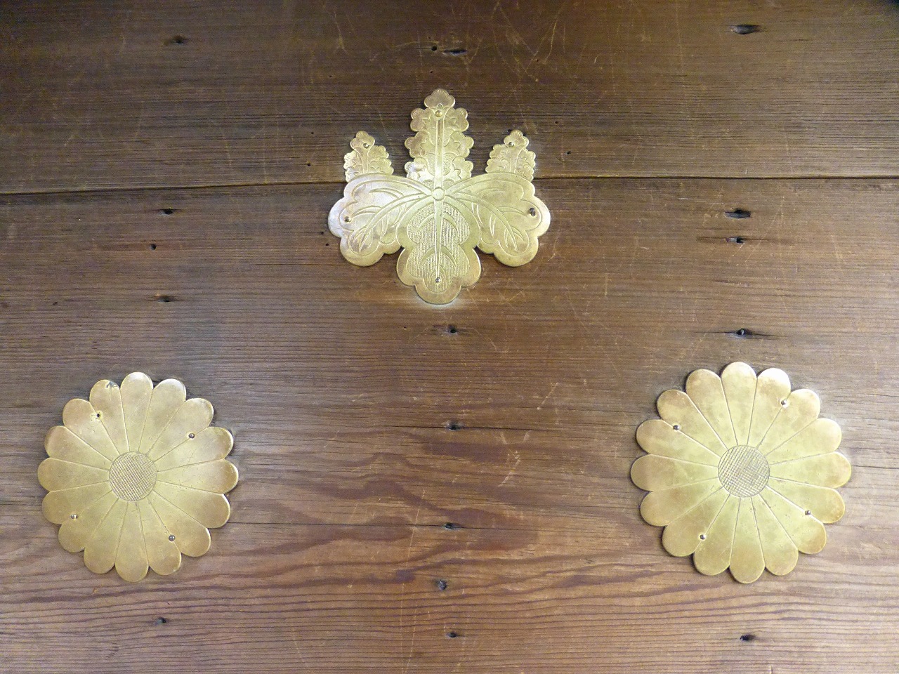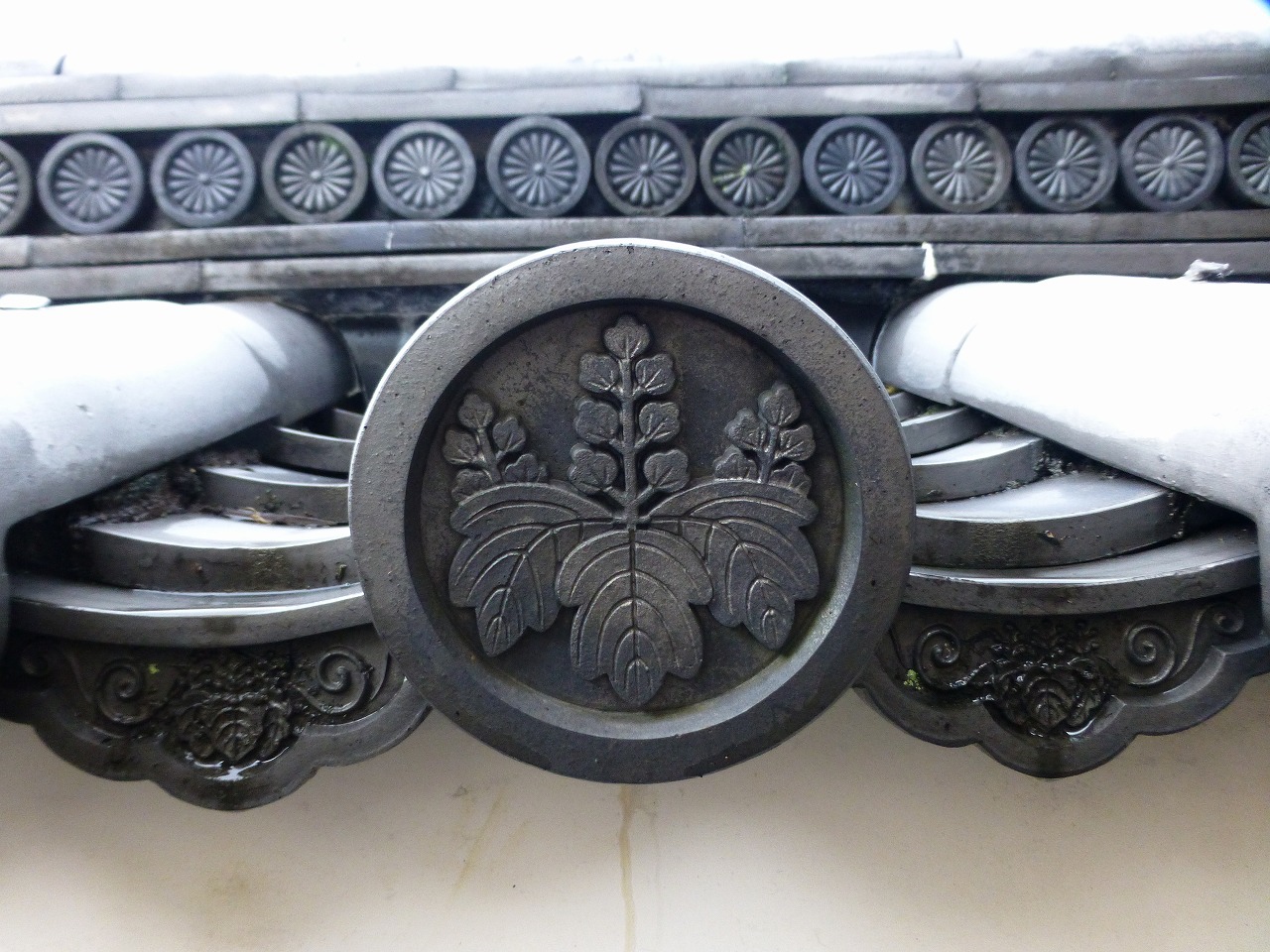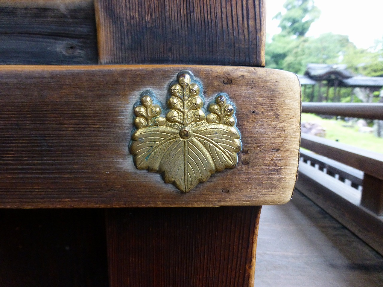 勅使門と、豊臣秀吉の家紋「五七の桐」。