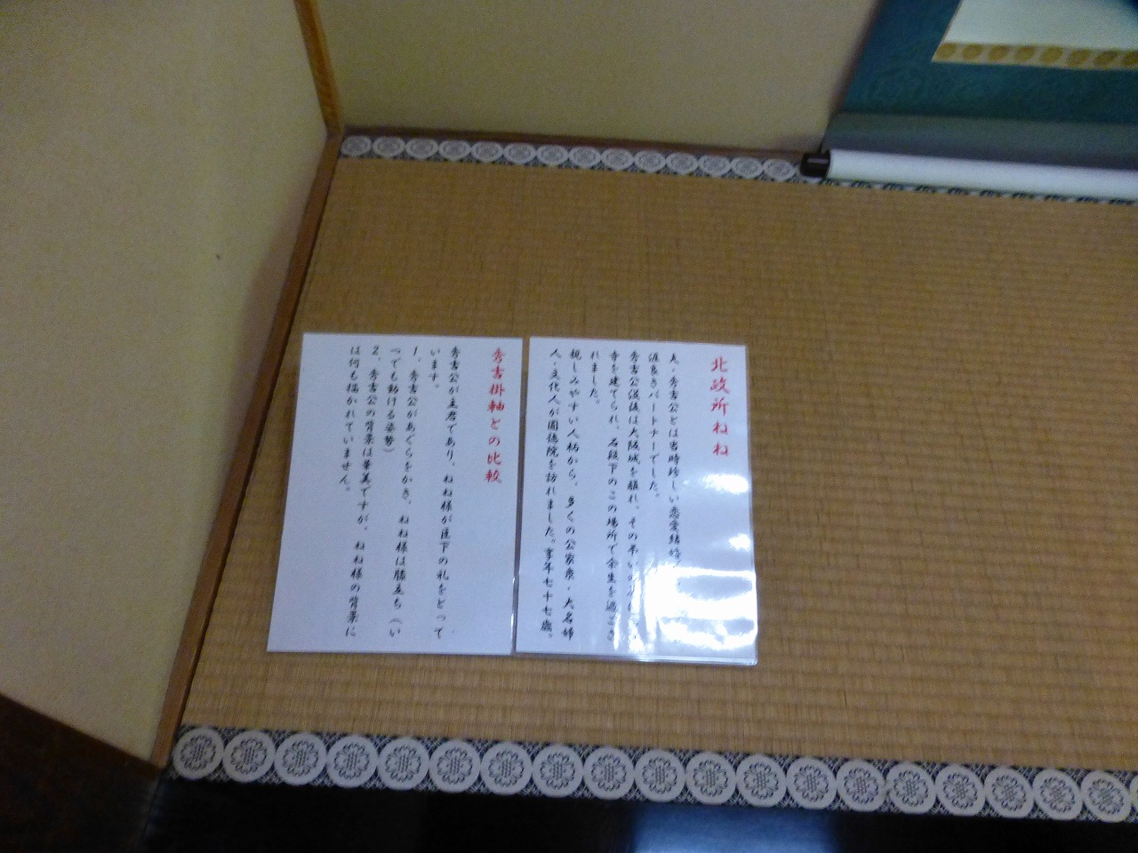 床の間には北政所(高台院・ねね)と…