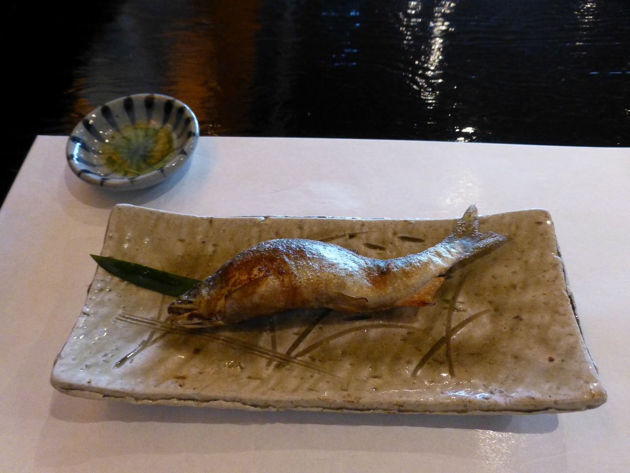 椀ものから10分後、焼きものの「鮎 塩焼き」。鮎なんて最後に食べたのいつだろうか…