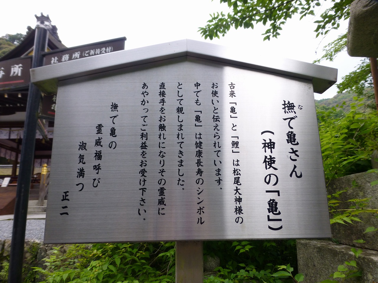 古くから酒の神として信仰を集め、境内の霊泉の「亀の井」の水を醸造の時に混ぜると、