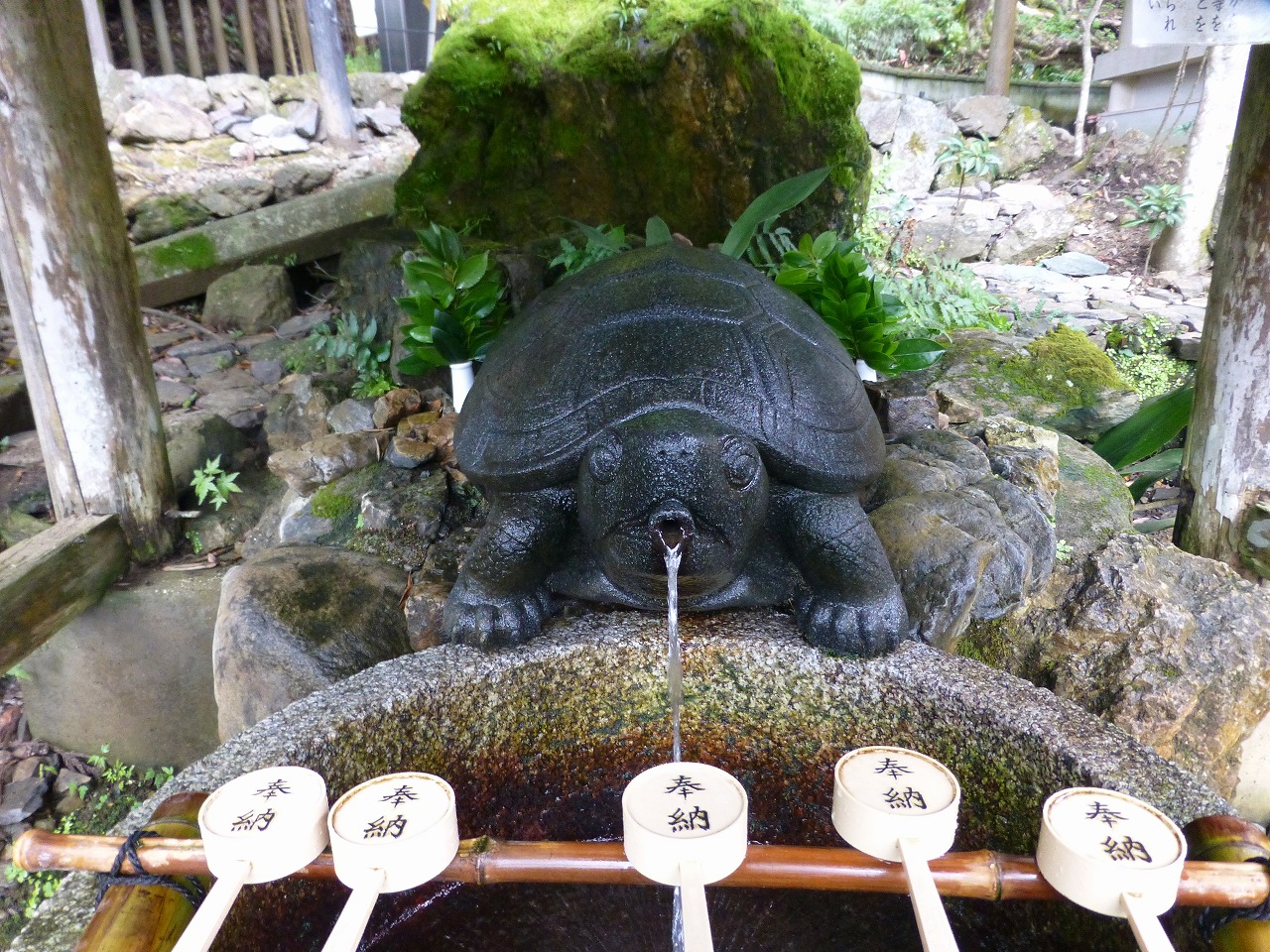手水舎…神使いである亀が鎮座。境内あちこちで亀の姿が見られます。