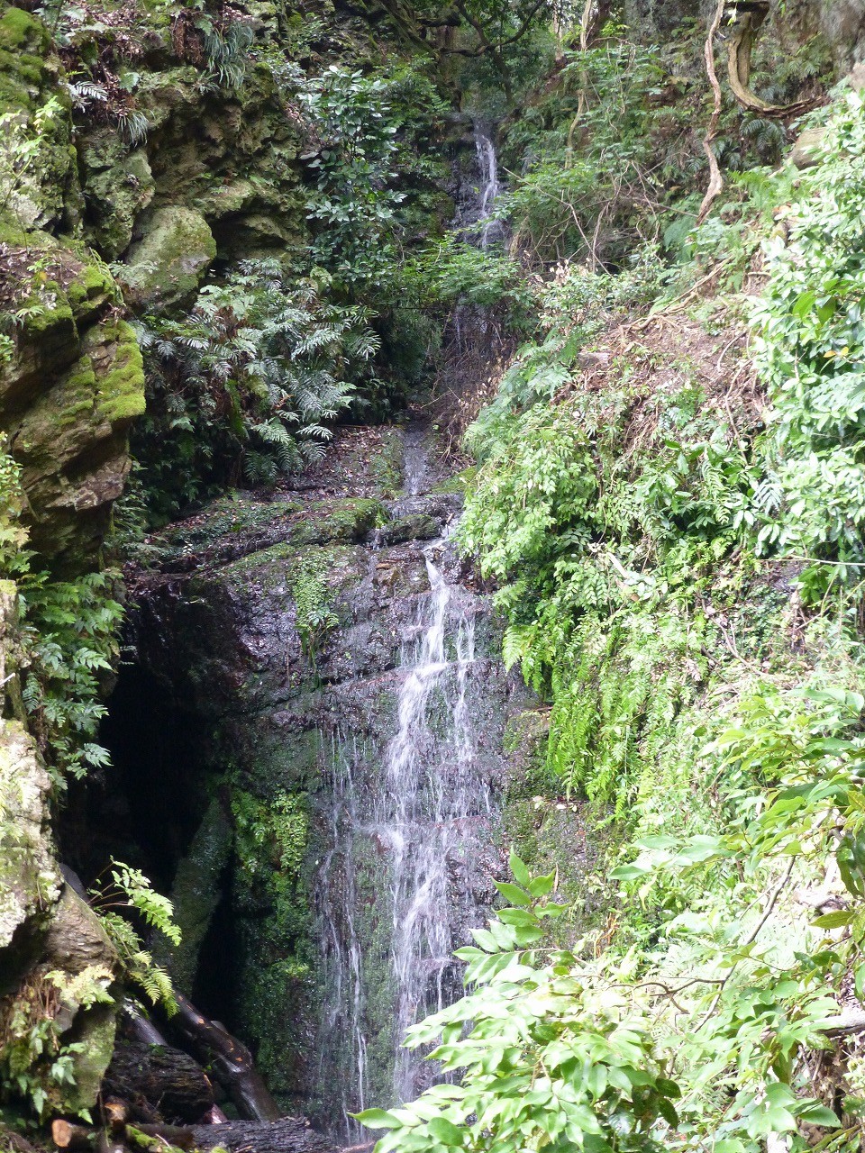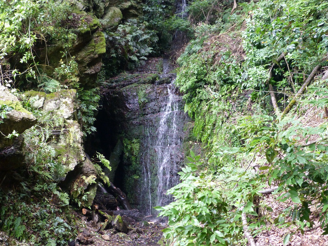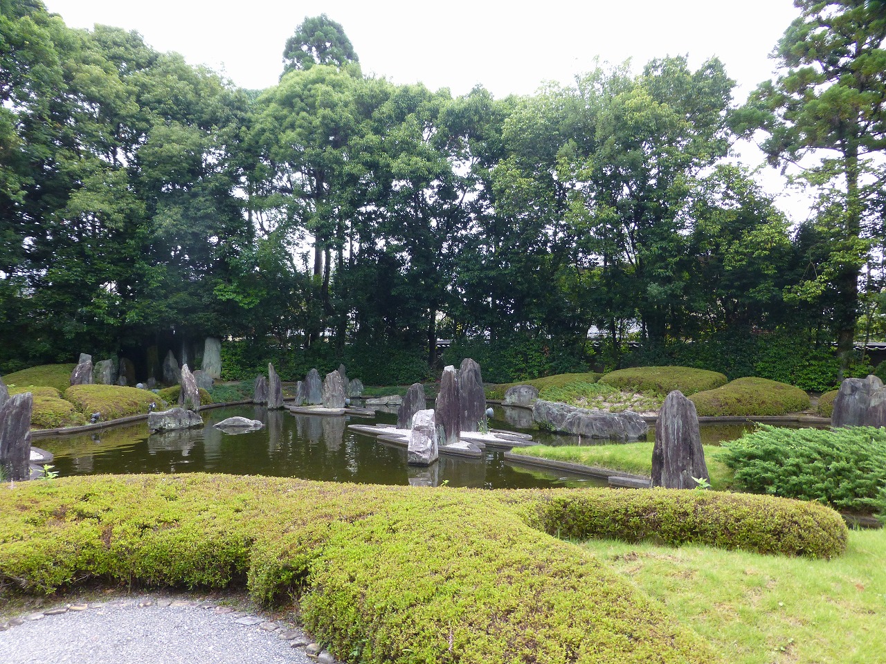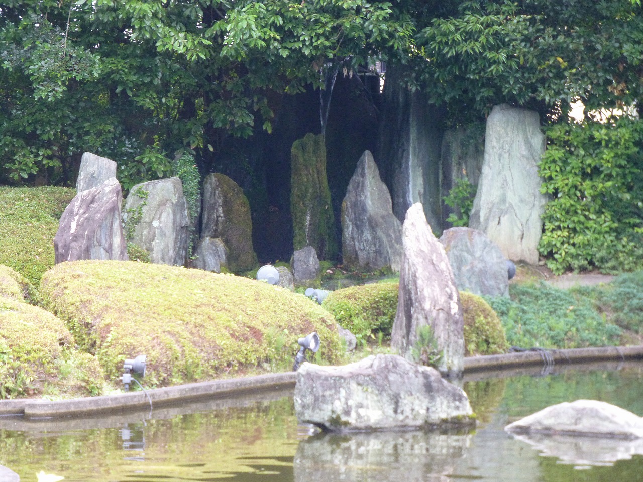 岩の間から噴出する水が鶴形の池に注ぐところ、大くの島が点在し、