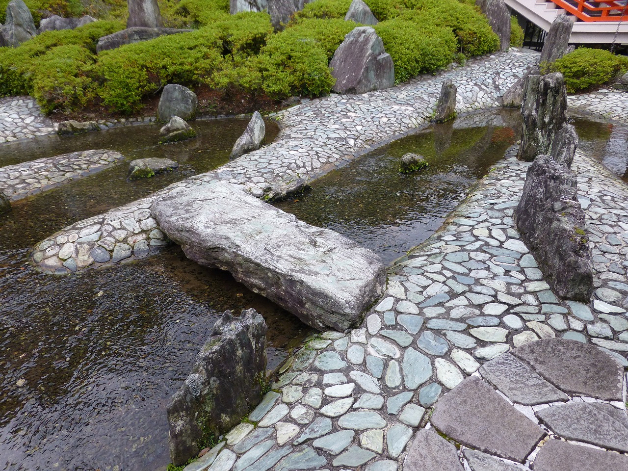 三つの庭に使われている200個あまりの石は、すべて徳島県吉野川の青石(緑泥片岩)です。