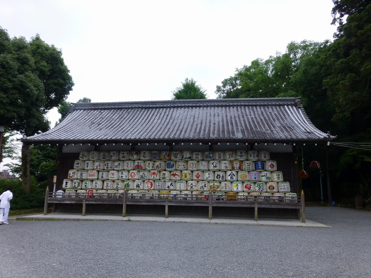 神輿庫の酒樽には全国の酒造家から奉献された樽の数々が。