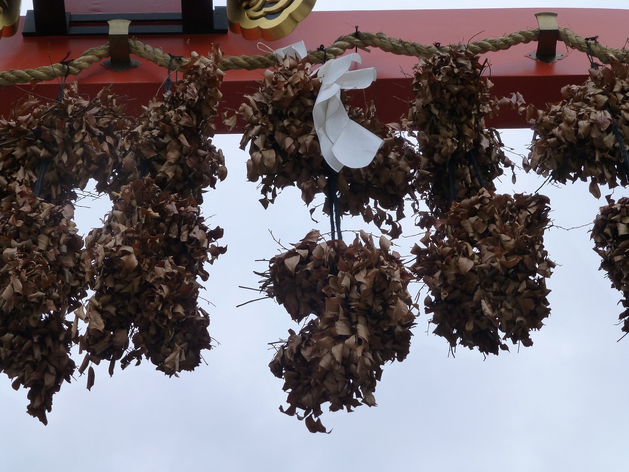 鳥居に何か…脇勧請という榊の小枝が下げられていました。