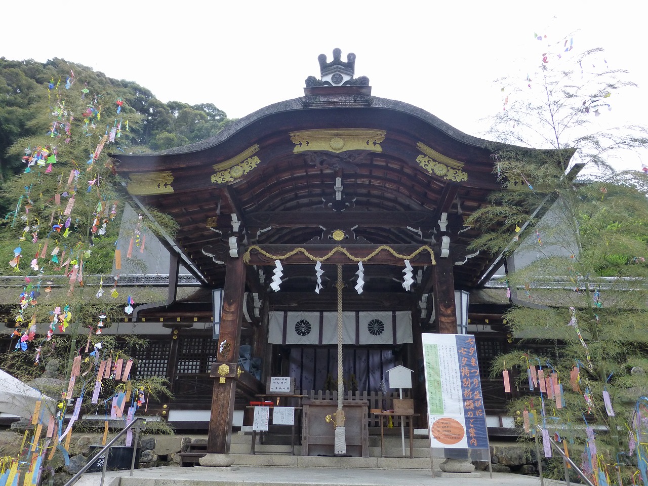 今日は7月4日(火)。7日(金)の七夕飾りが松尾造りの本殿の釣殿に。ここで参詣。