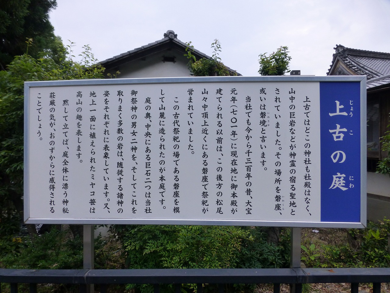 もとは背後の松尾山〔別雷山(わけいかづちのやま)〕(標高223メートル)に残る磐座での祭祀に始まるとされ、
