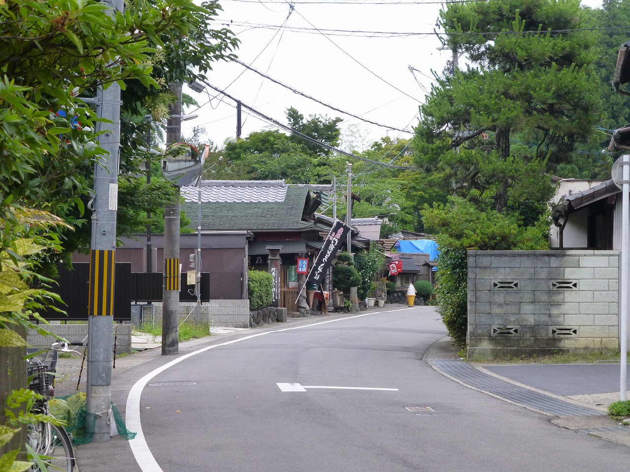 苔寺道バス停の前に仲良く並んだ茶店がふたつ。