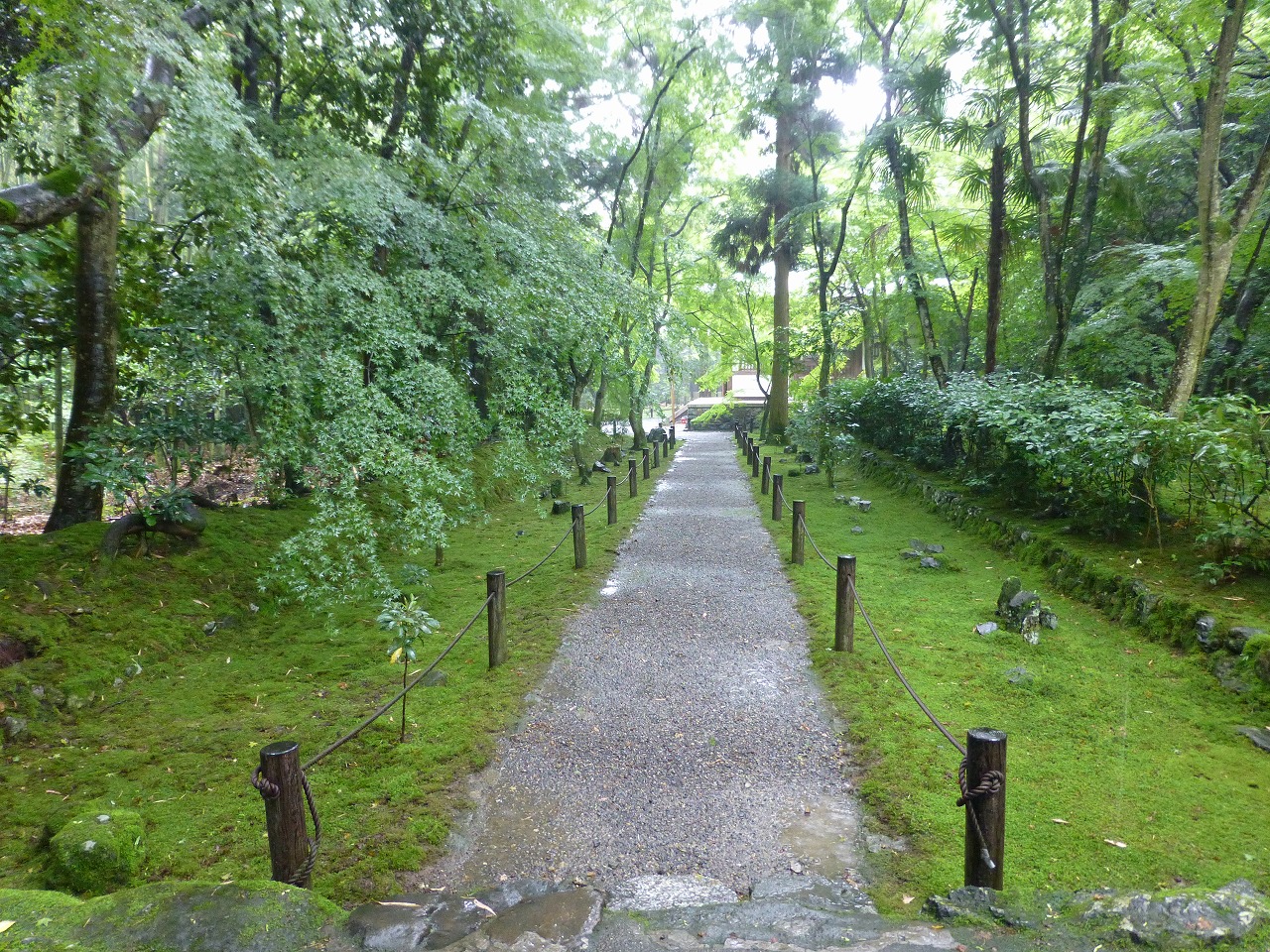 まさに竹の寺。雨に濡れる美しい竹林の参道。