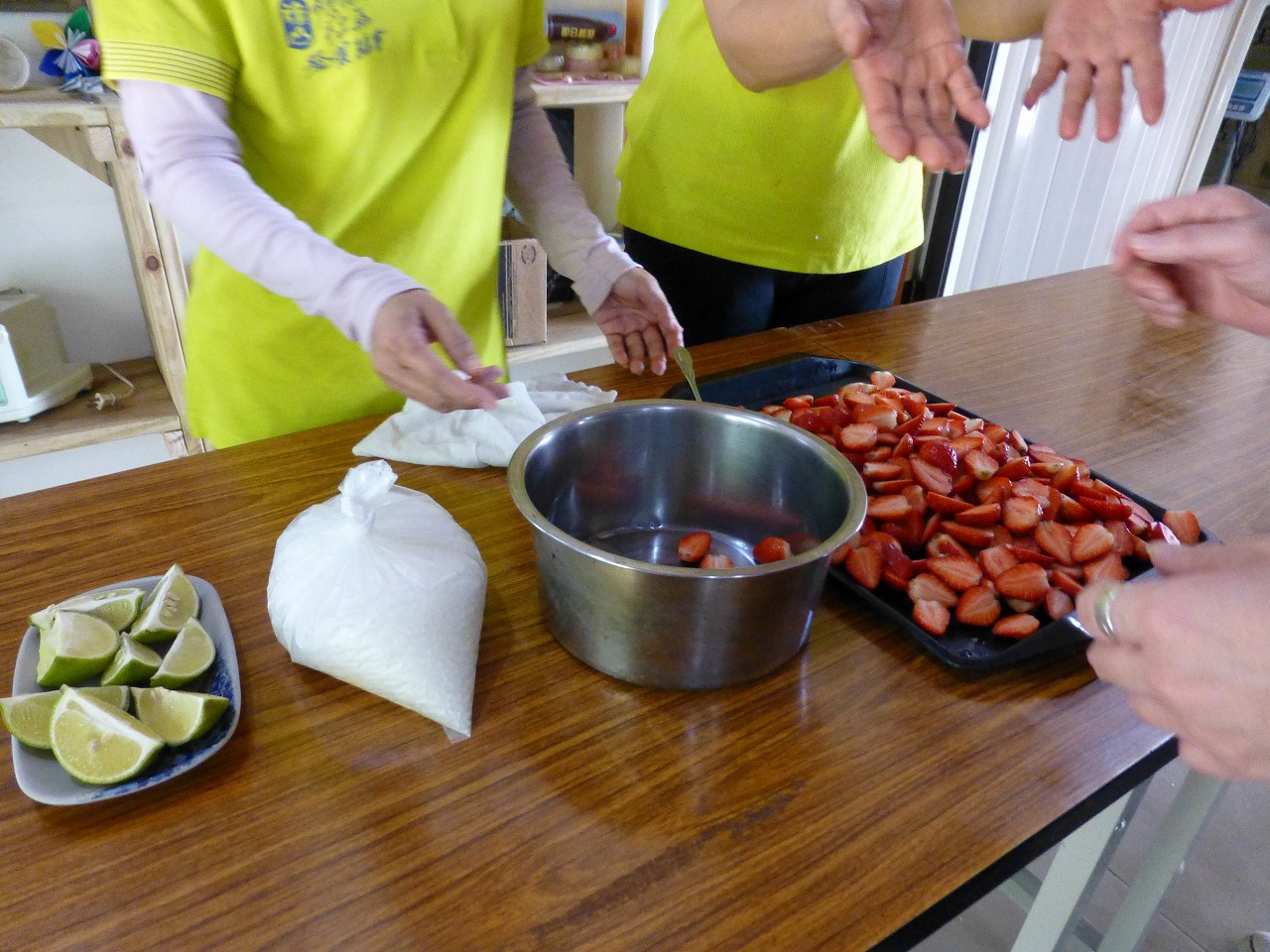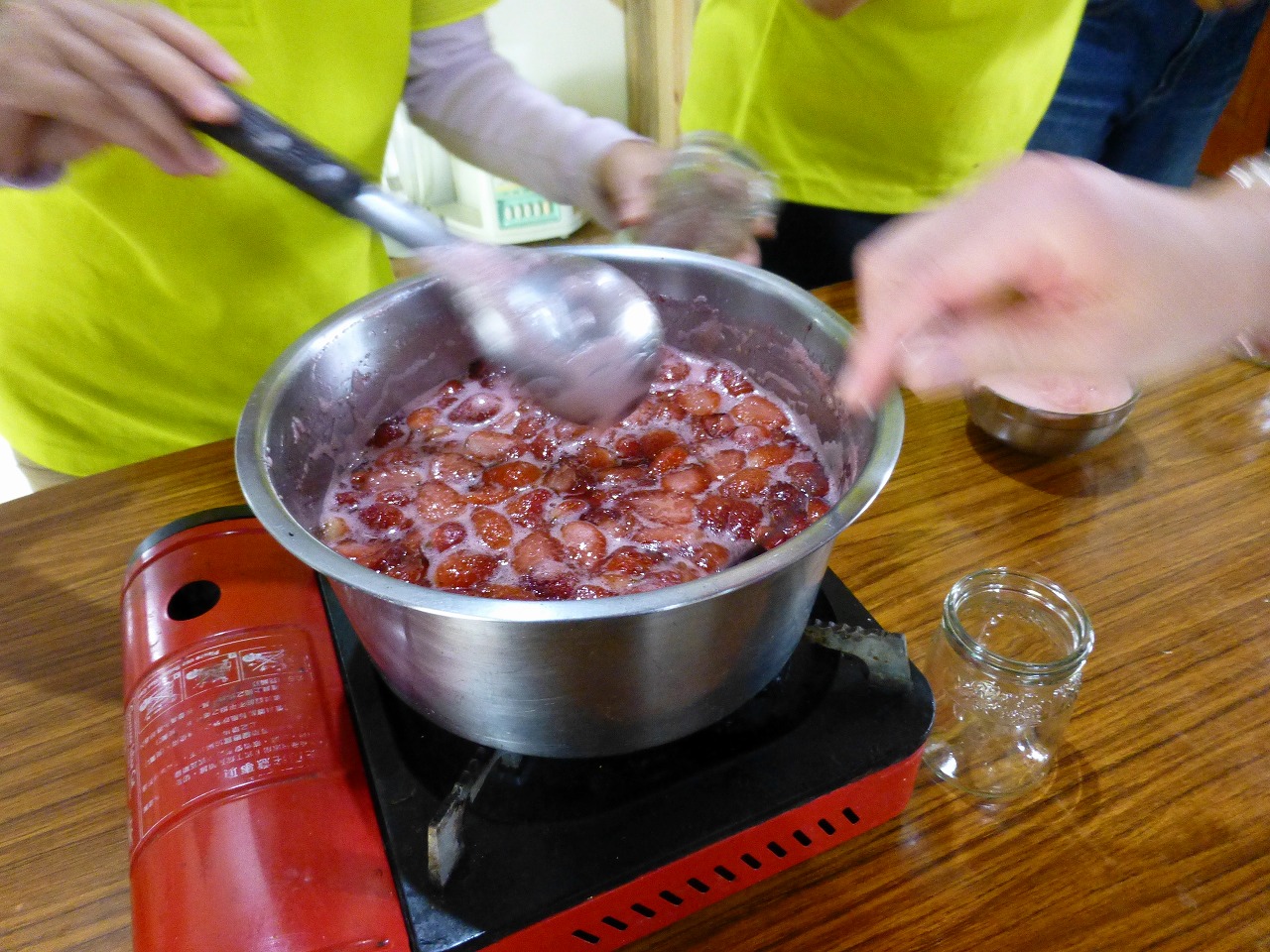 かるめ焼きを作った後は、イチゴジャムを作ることになりました。