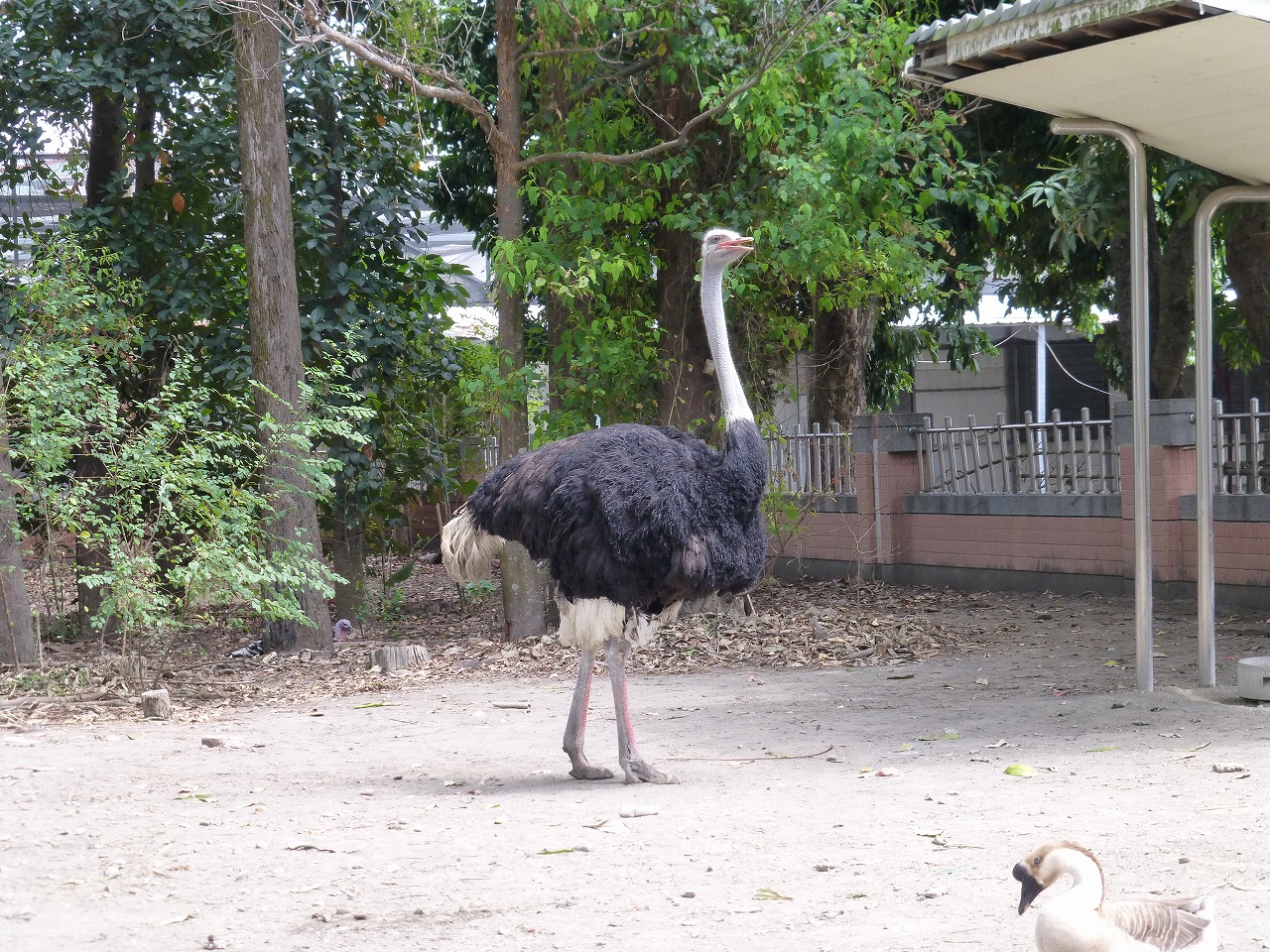 駝鳥(だちょう)園。近くに用意されているエサ(サツマイモの葉など)をあげられます。