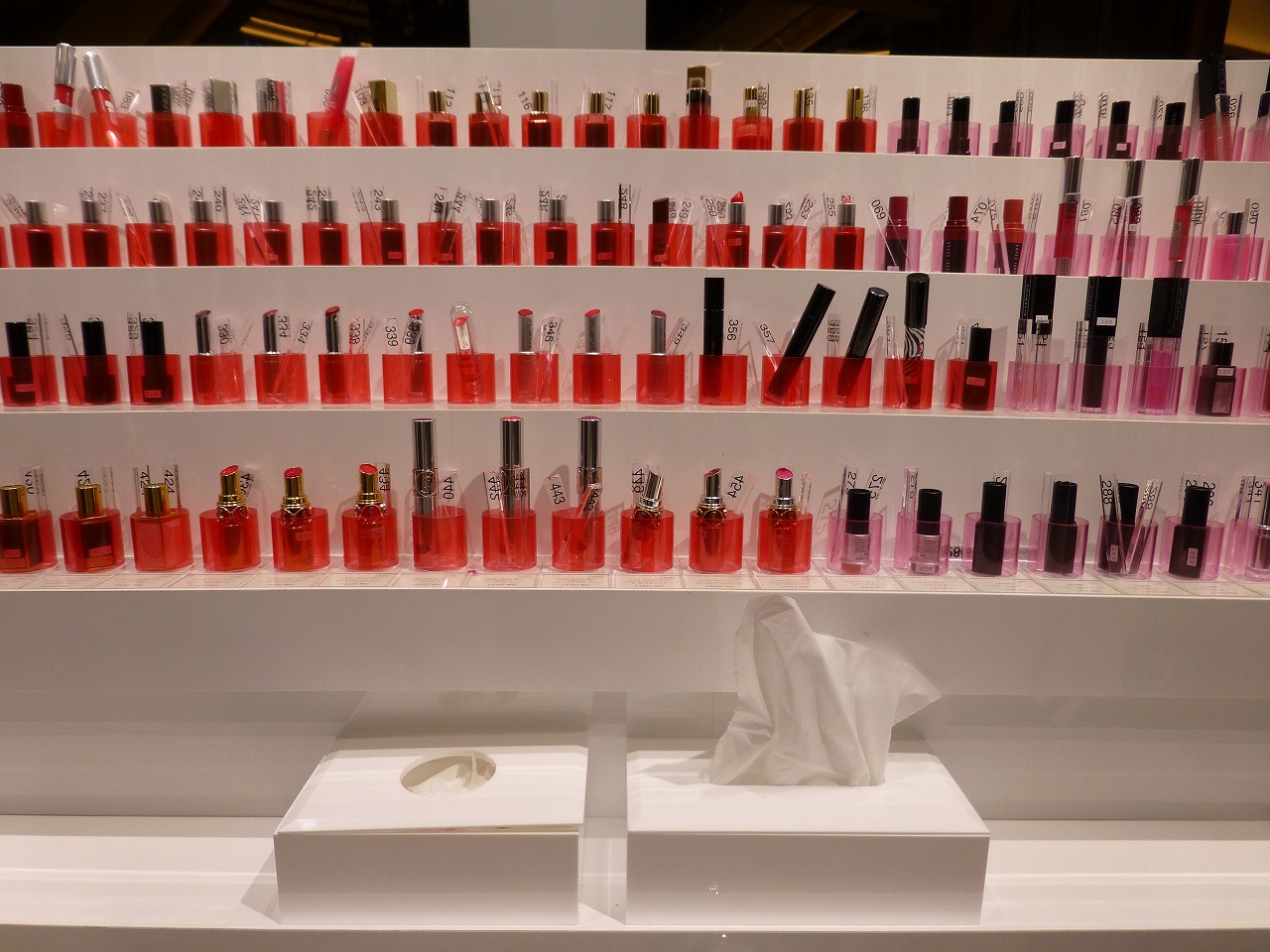 これすごい!「リップ編集」だって!カラー別にいろんなブランドのものが並んでる。