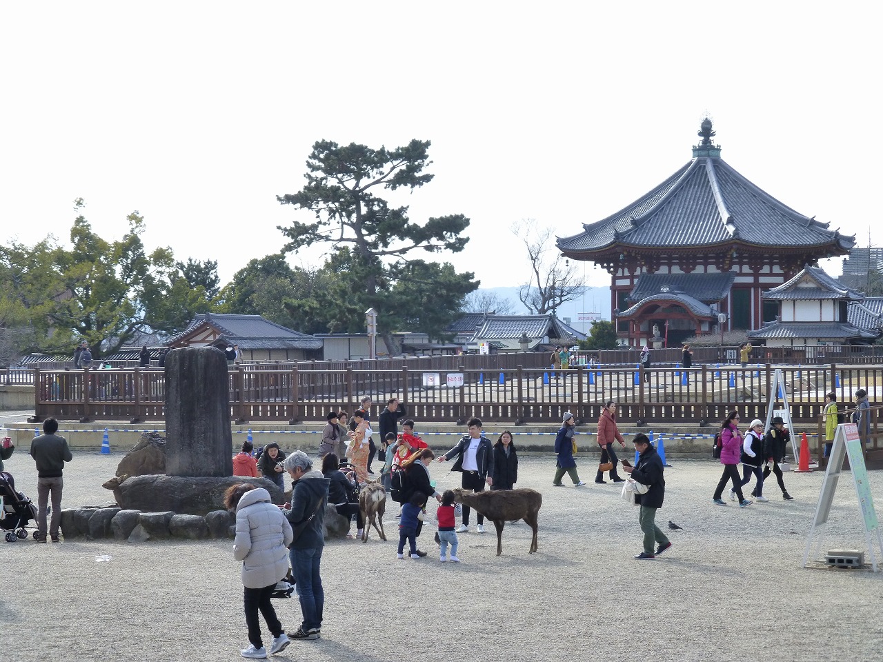 五十二段を上がって、東金堂と五重塔の間の道を奈良国立博物館の方へ。