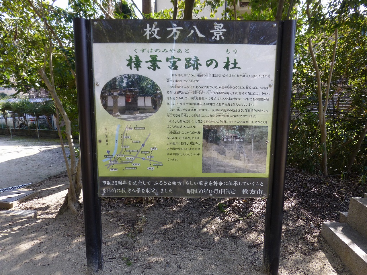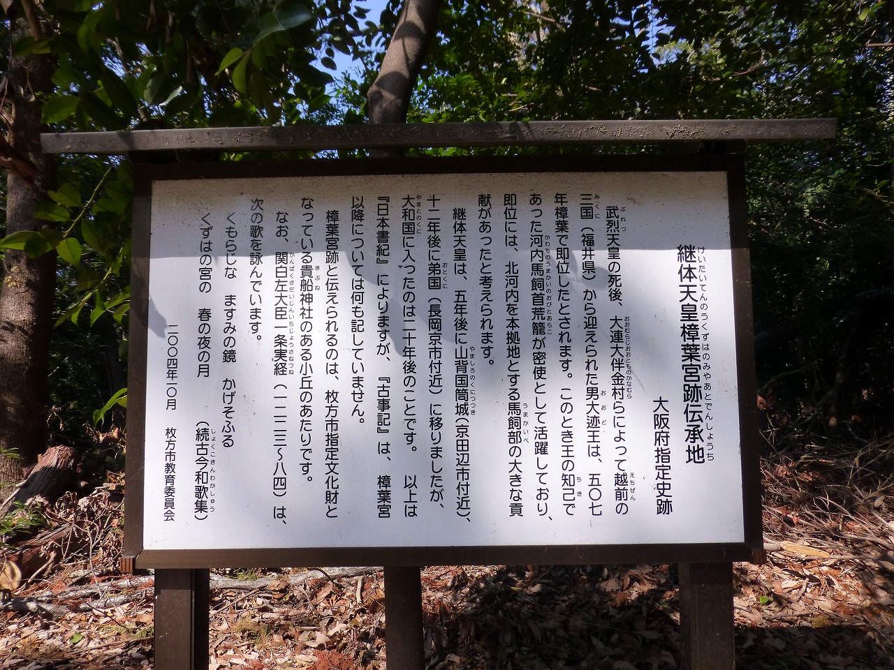 それは大阪府枚方市内にある「継体天皇樟葉宮跡伝承地」です。