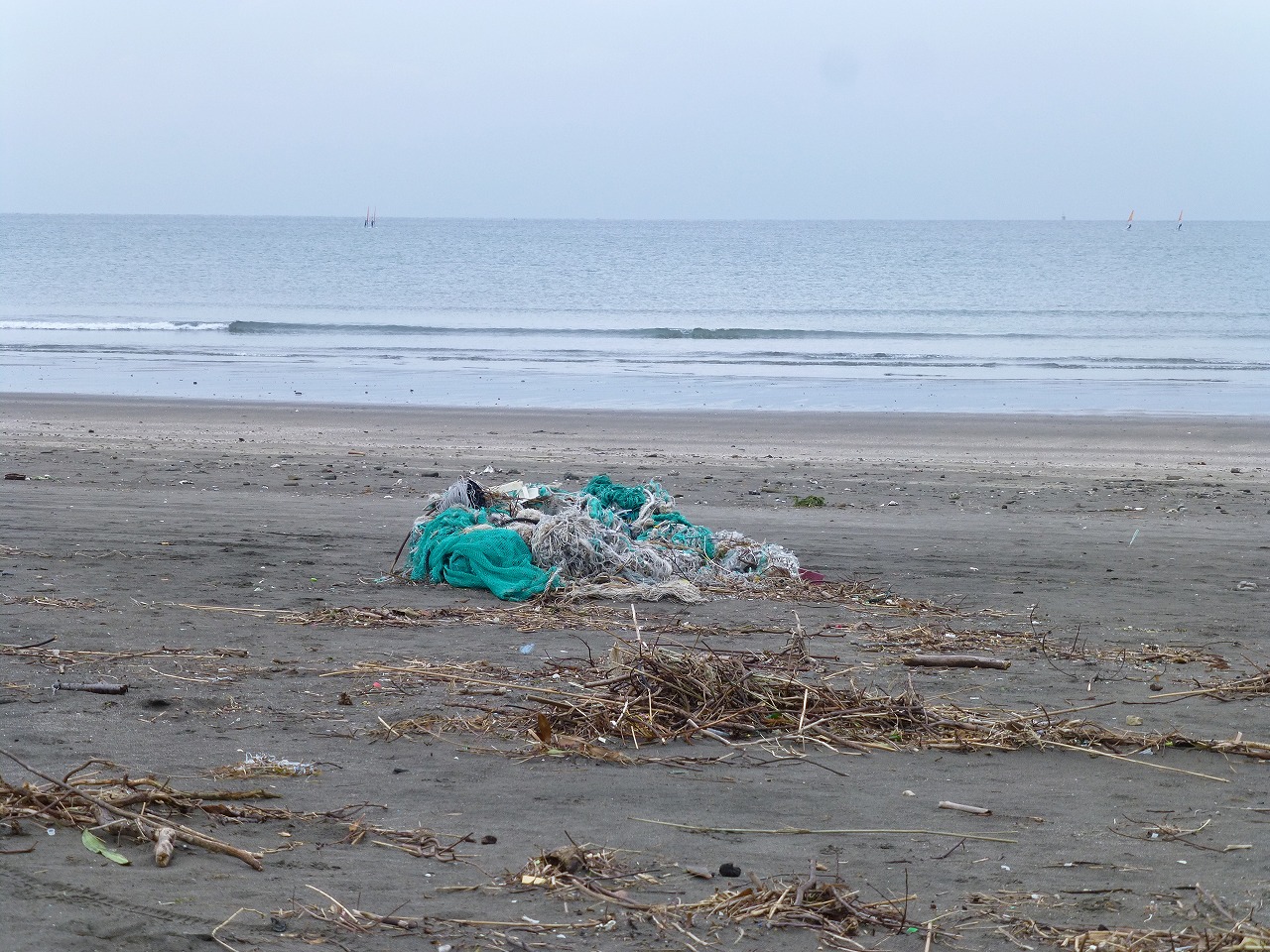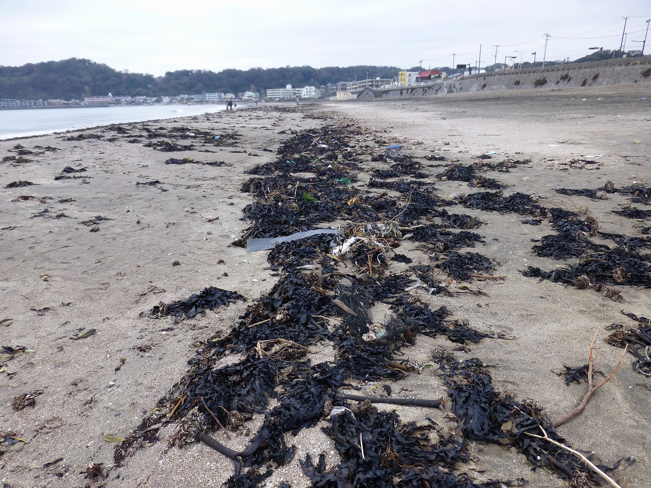 続いて滑川を渡った反対側、由比ヶ浜に移動してビーチコーミングを続けました。