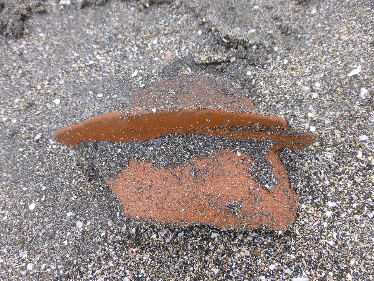こんな大きな土器片(持ち帰りました)が砂から顔を出していました。