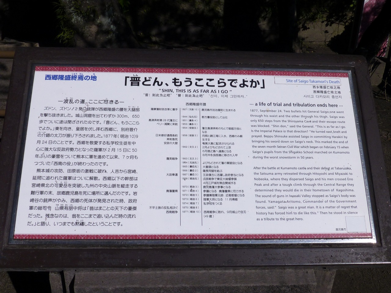 鹿児島2泊3日の旅、いよいよ最終日。城山の西郷洞窟と西郷隆盛終焉の地に行って来ました。