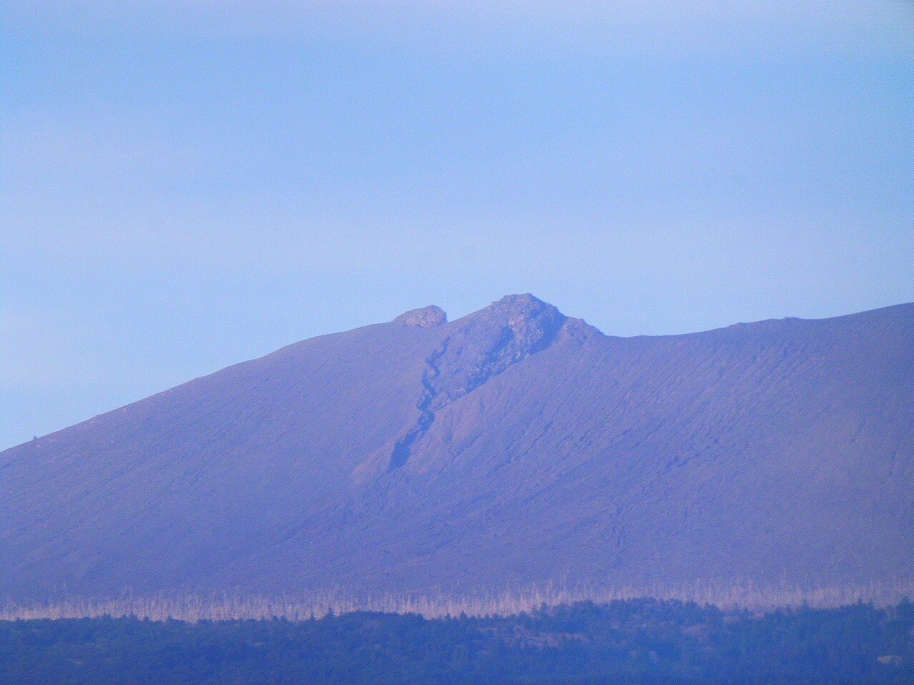 記憶にも新しい2018年4月5日に噴火した新燃岳(しんもえだけ)。別名「ウサギの耳」。
