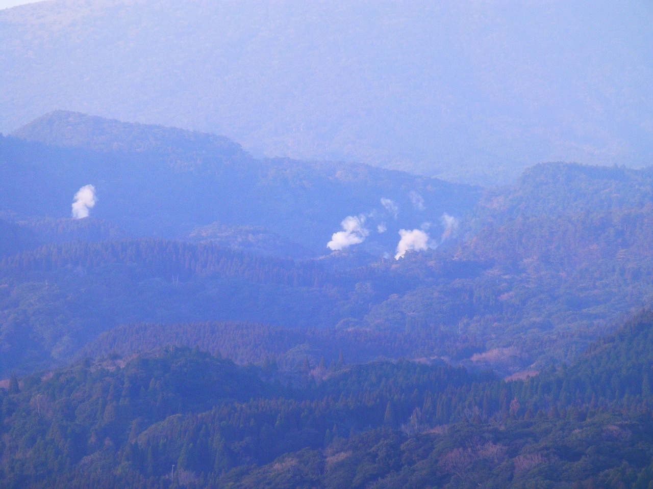 手前の低い山間から温泉♨の煙が立ち上っています。