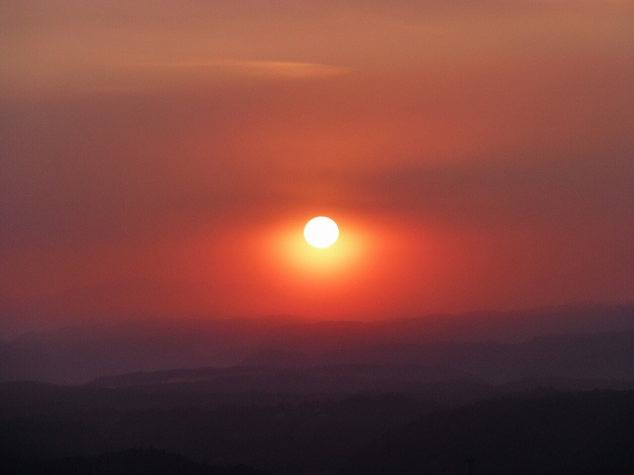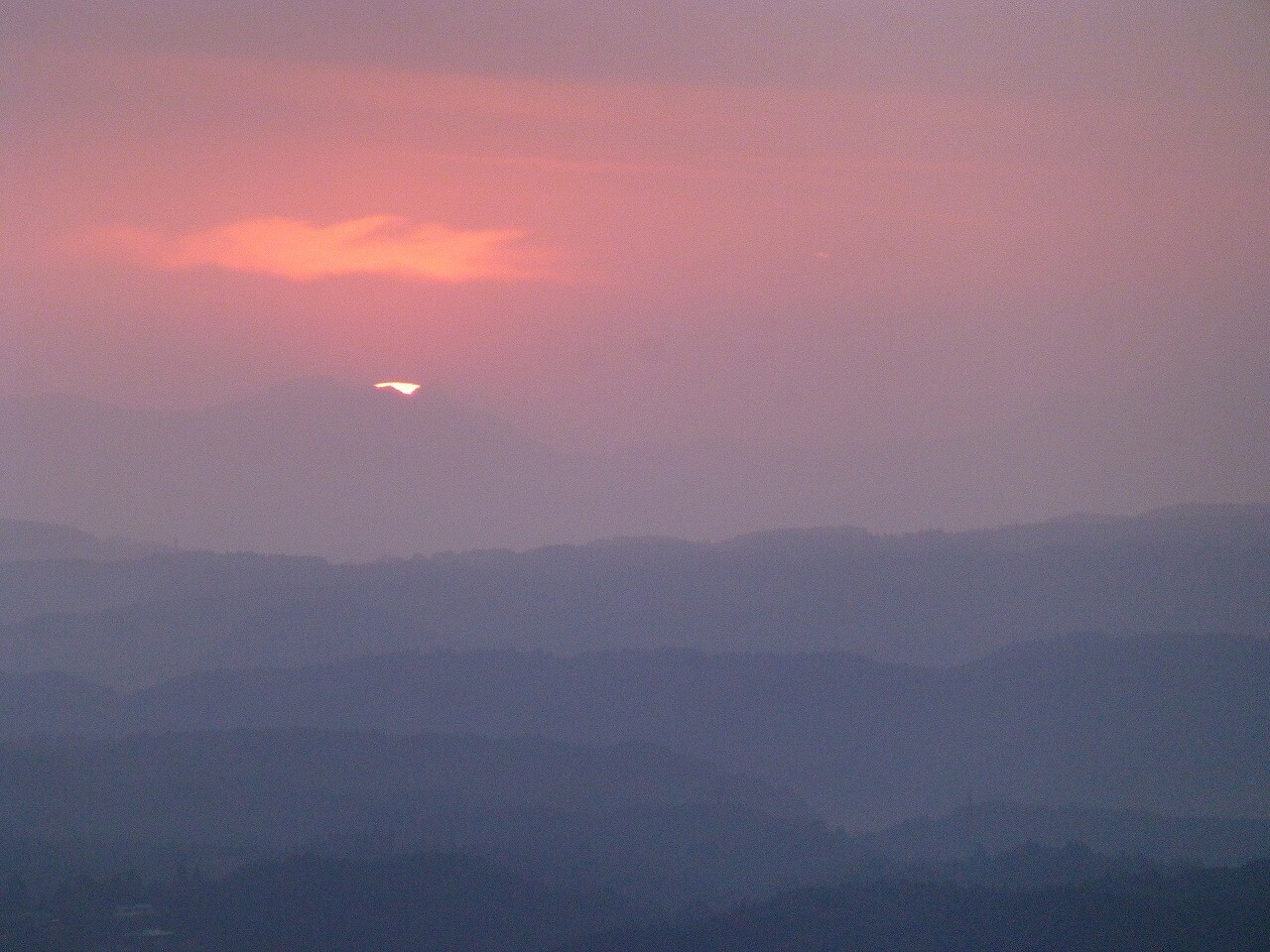 2Fのベランダから幾重にも霧島の山々が望め、いまにも美しい夕日が沈もうとしていました。
