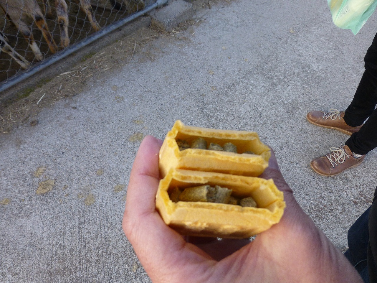 遠慮がちなこのコにエサをあげました。