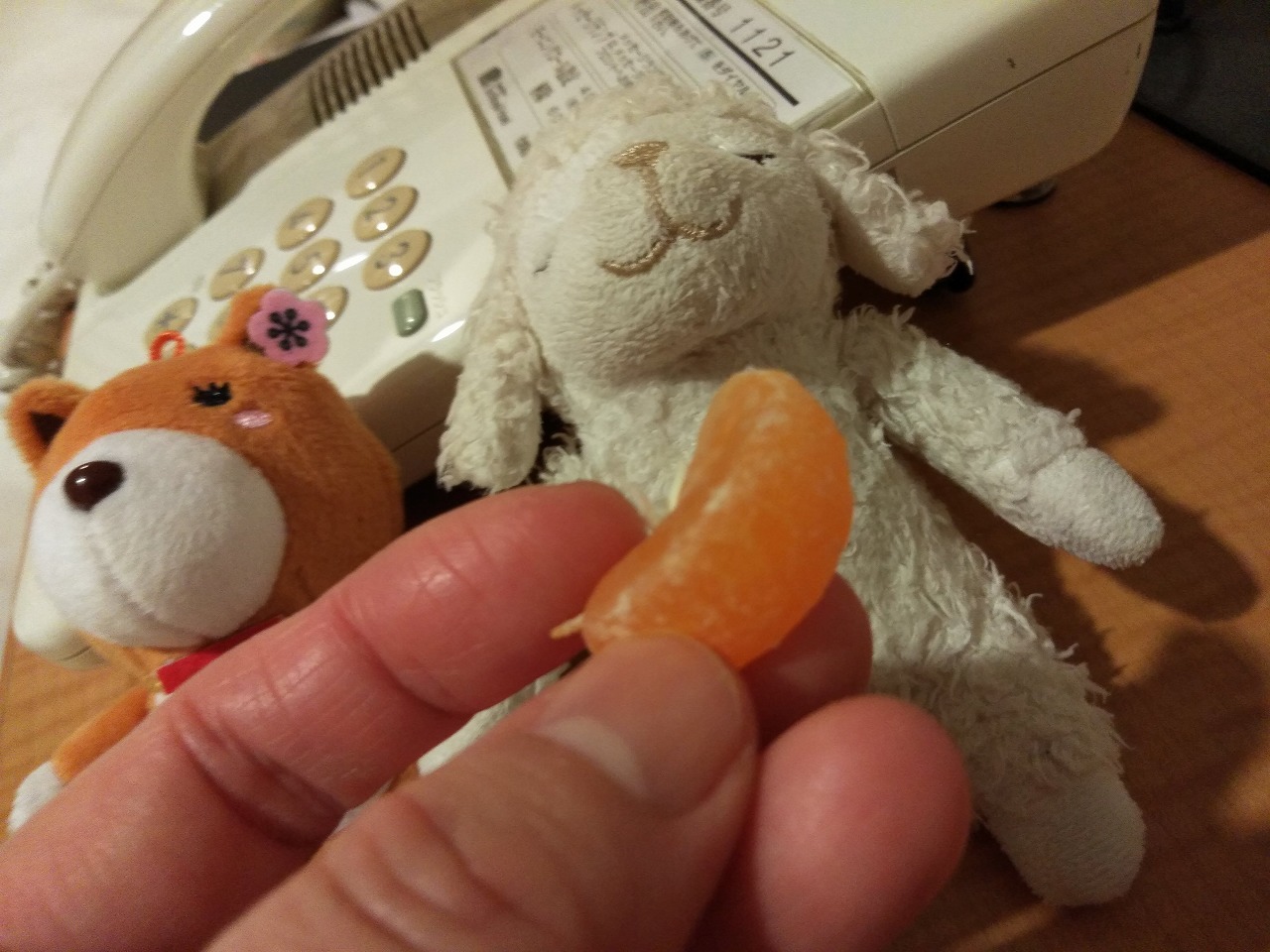 第1日目(2020.1.8.水)ホテルにて桜島産の「小みかん」をいただきました。