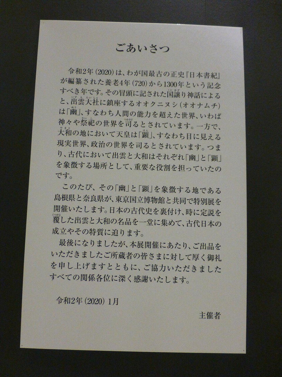 上野の東京国立博物館・平成館で3月8日(日)まで開催中の日本書紀成立1300年 特別展「出雲と大和」に行って来ました。
