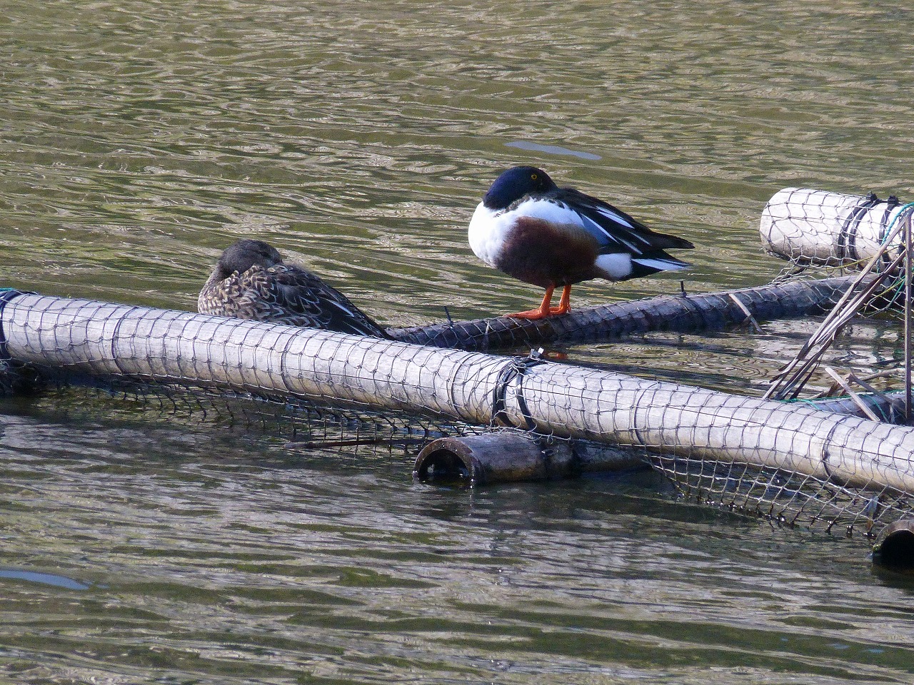 ハシビロガモのつがいと