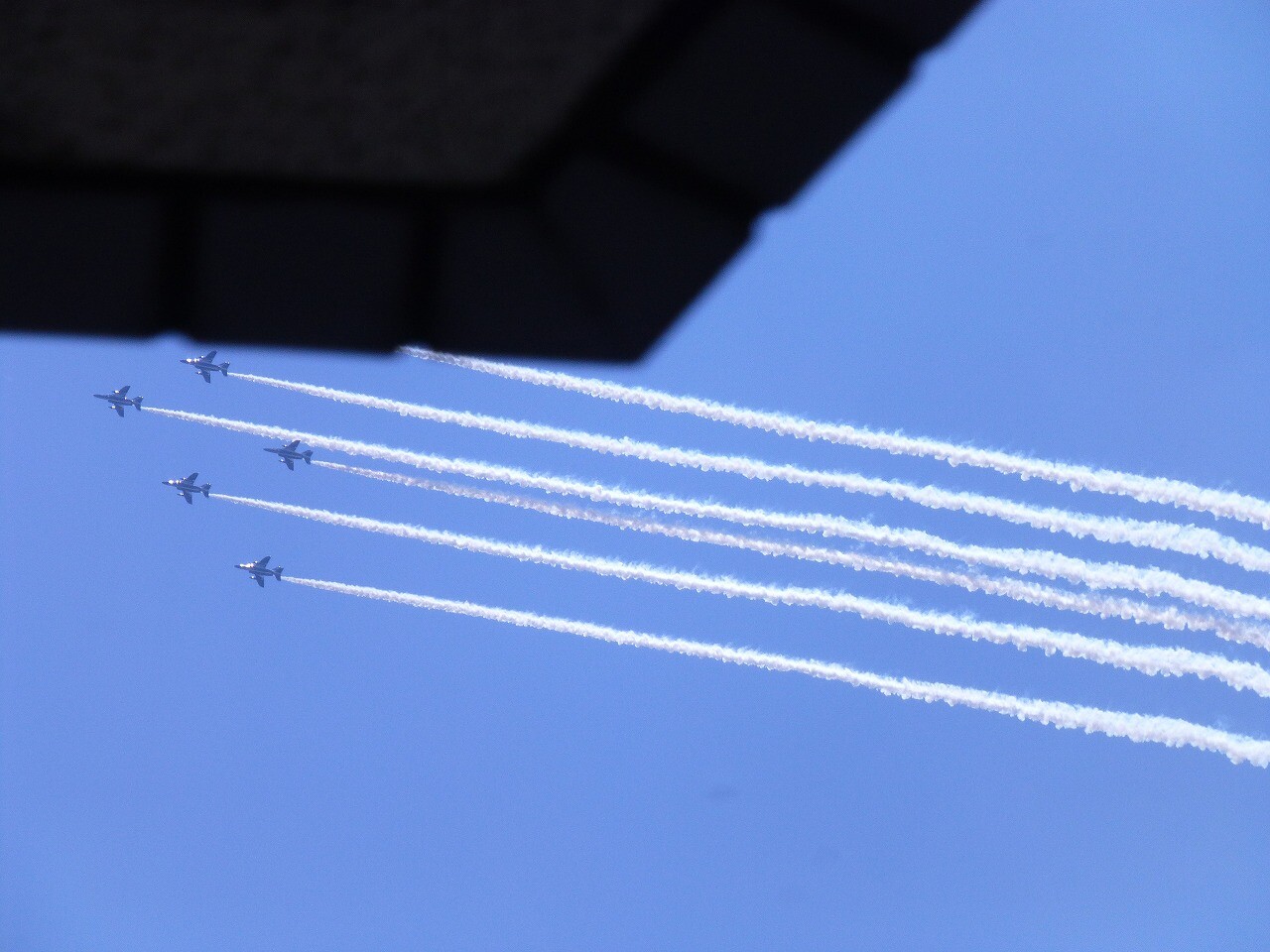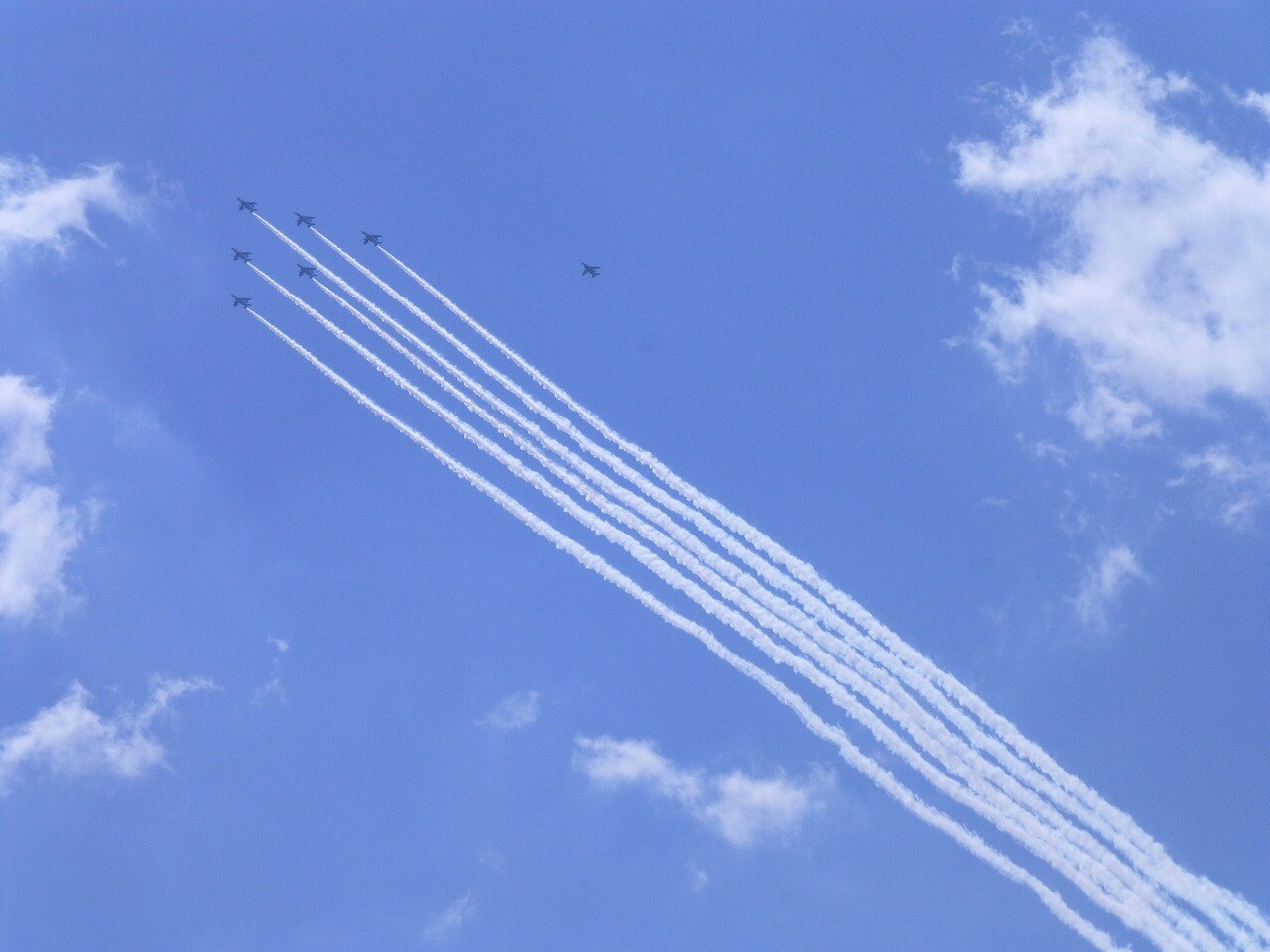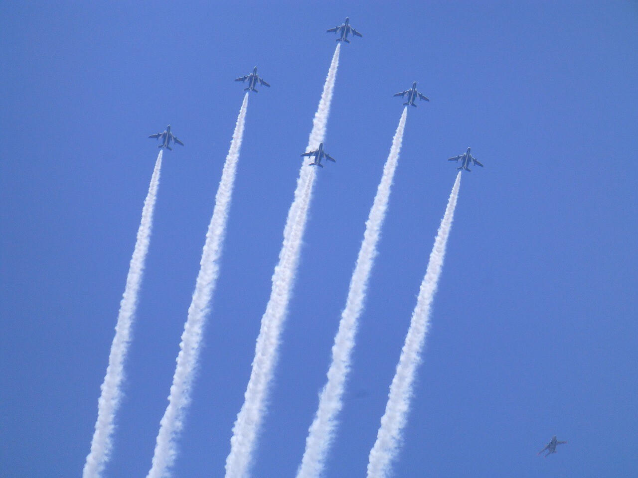 のどかな青空に突然姿を現した「ブルーインパルス」にちょっとびっくり。