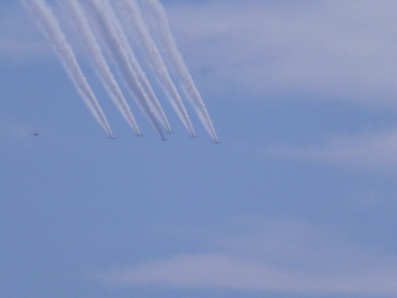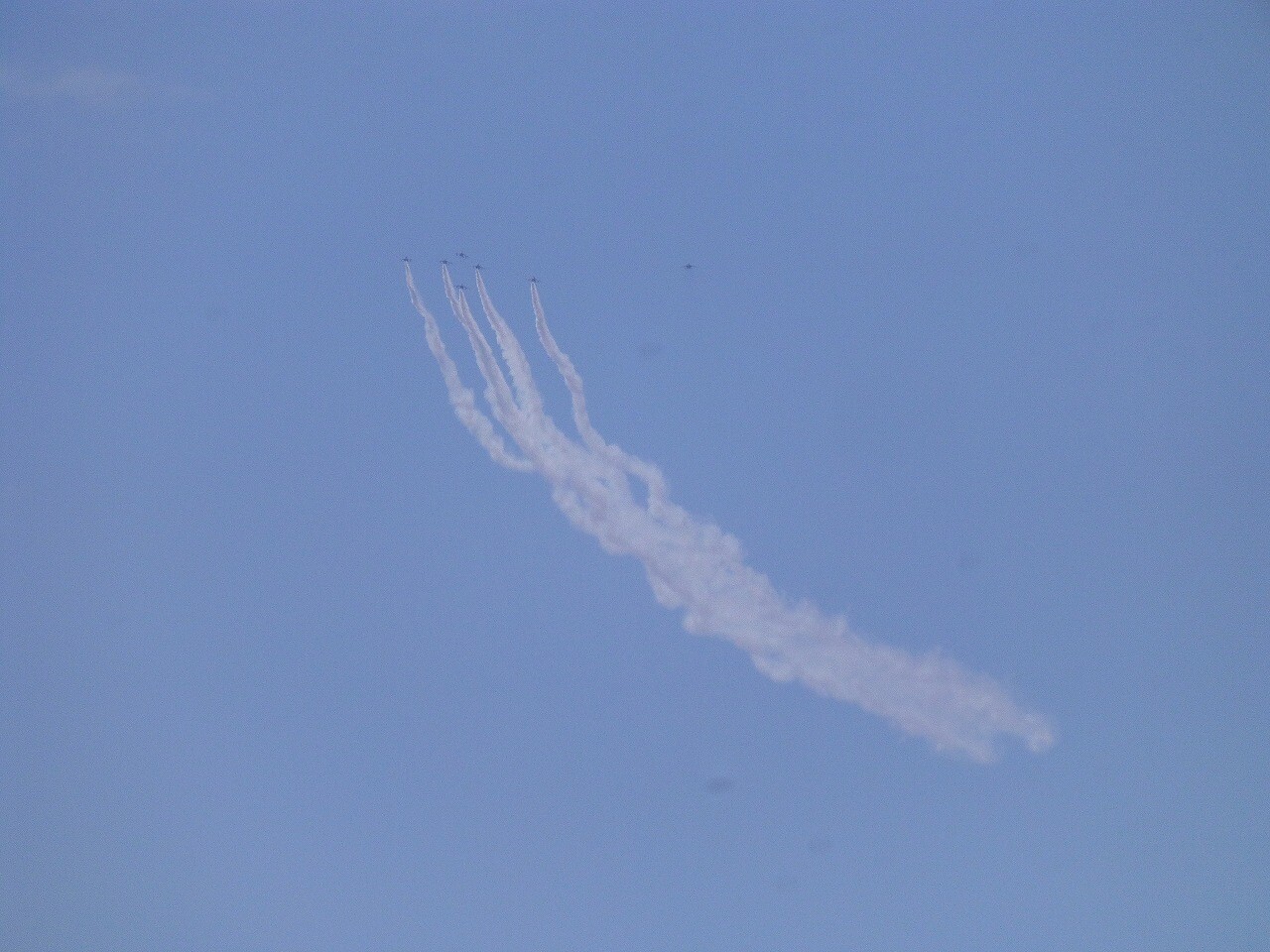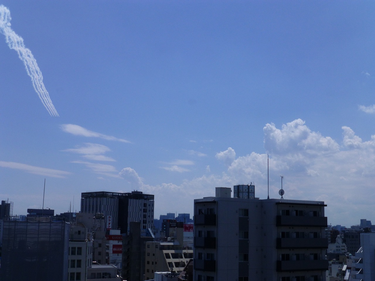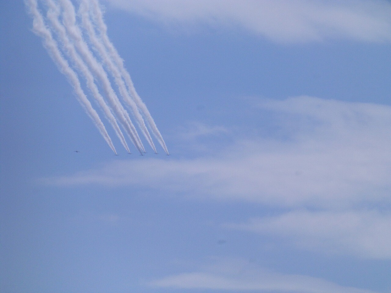 のどかな青空に突然姿を現した「ブルーインパルス」にちょっとびっくり。