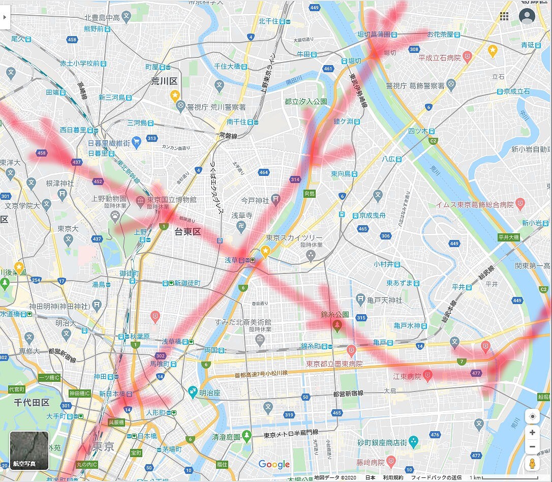 ルート付近には新型コロナ患者を受け入れている医療機関が点在している。