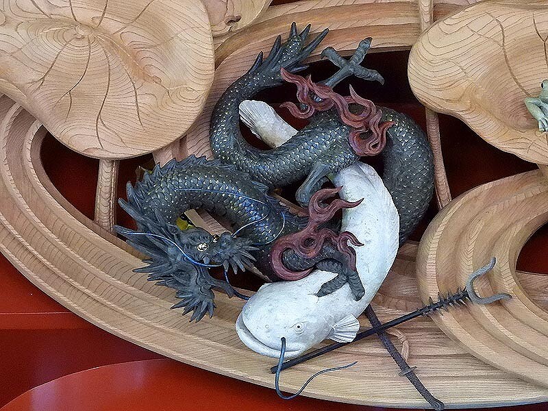 龍と一緒にいるので鯉かと思ったらヒゲがありました。鯰(なまず)ですね。