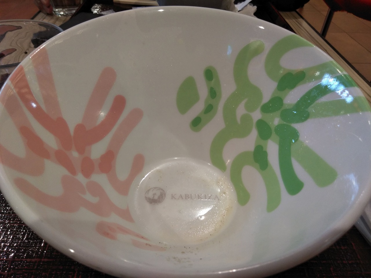 スープまできれいに完食。隈取が描かれたスタイリッシュな器でした。