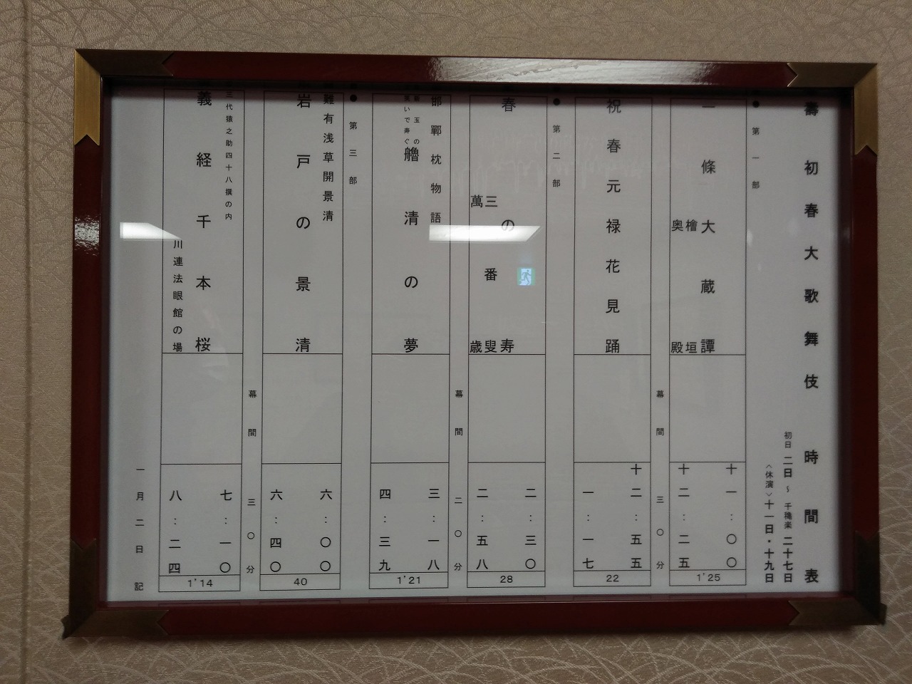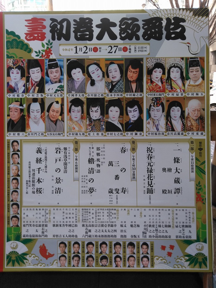 歌舞伎座で1月2日(日)〜27日(木)まで公演中の壽初春大歌舞伎・第一部に行って来ました。