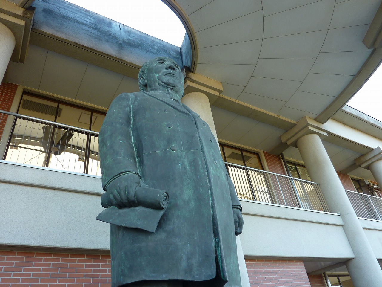 しかし。これはサプライズ。記念館の裏口の外に大きな大きな渋沢栄一翁の銅像が。