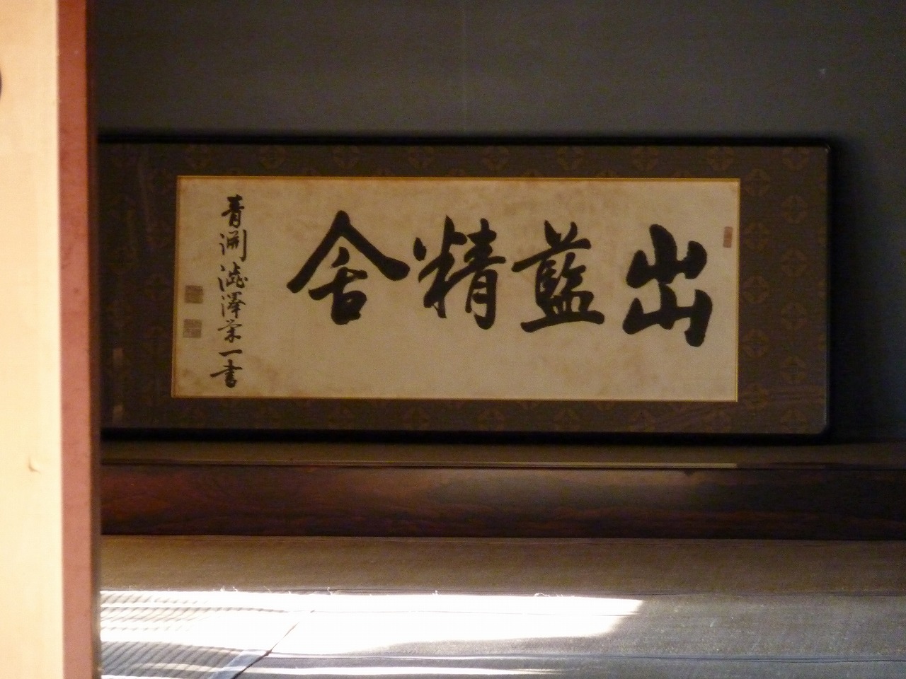 座敷の奥には渋沢栄一翁の書の扁額がありました。